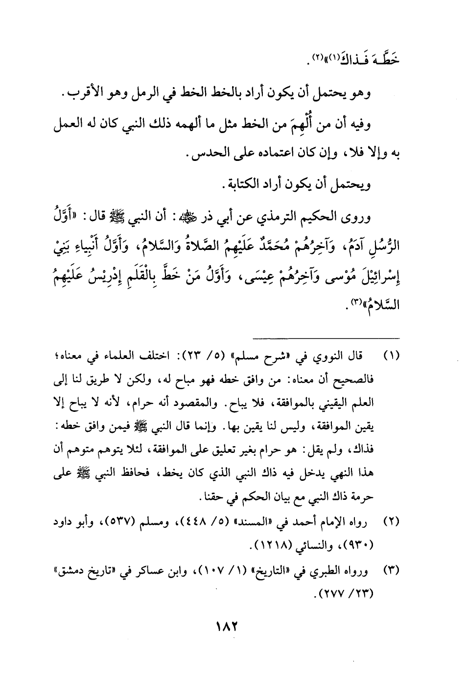 وروى الحكيم الترمذي عن أبي ذر - رضي الله عنه -: أن النبي - صلى الله عليه وسلم - قال: "أَوَّلُ الرُّسُلِ آدَمُ، وَآخِرُهُمْ مُحَمَّدٌ عَلَيْهِمُ الصَّلاةُ وَالسَّلامُ، وَأَوَّلُ أَنْبِياءِ بَنِيْ إِسْرائِيْلَ مُوْسى وَآخِرُهُمْ عِيْسَى، وَأَوَّلُ مَنْ خَطَّ بِالْقَلَمِ إِدْرِيْسُ عَلَيْهِمُ السَّلامُ" (¬3).