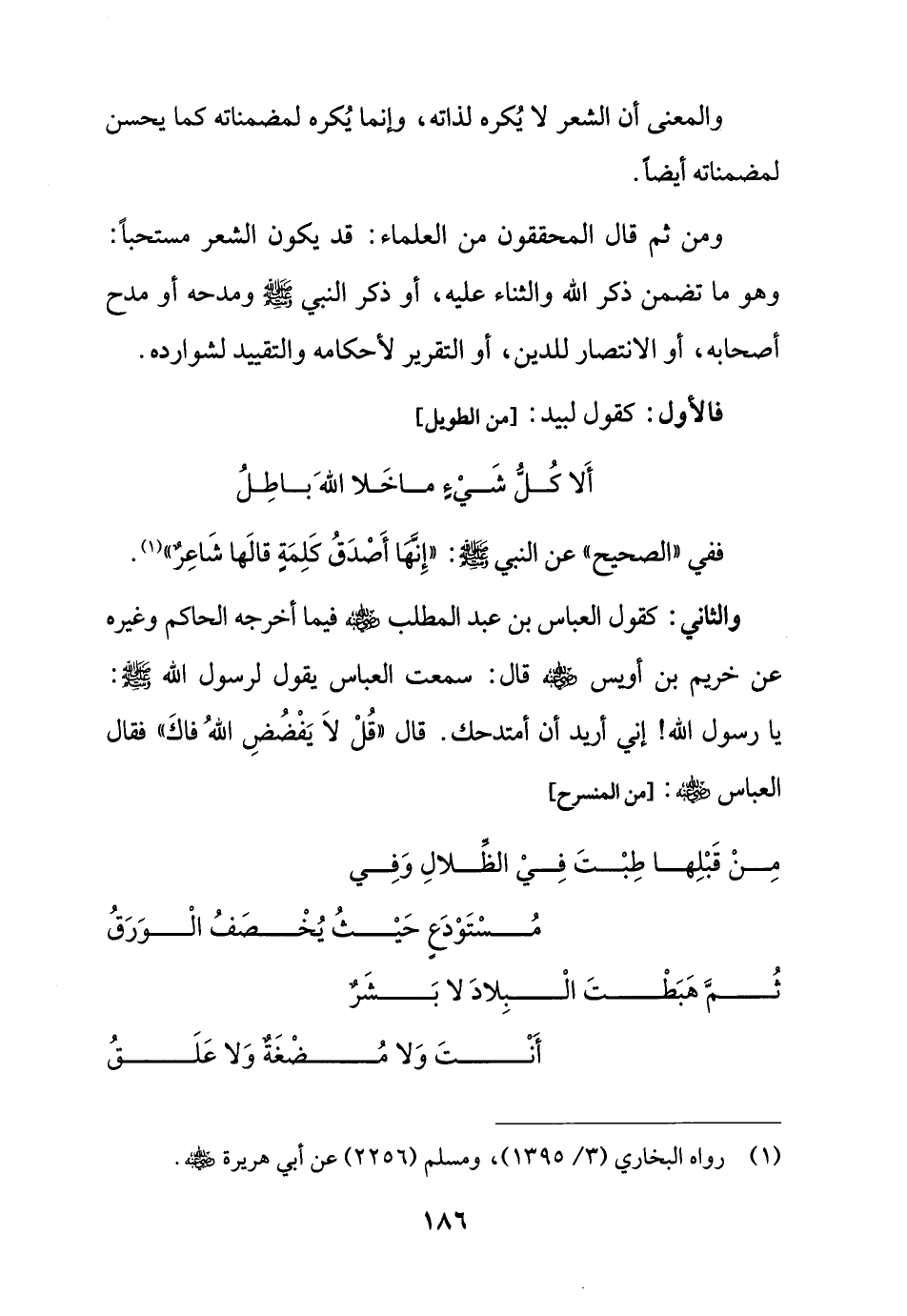 ففي "الصحيح" عن النبي - صلى الله عليه وسلم -: "إِنَّهَا أَصْدَقُ كَلِمَةٍ قالَها شَاعِرٌ" (¬1).