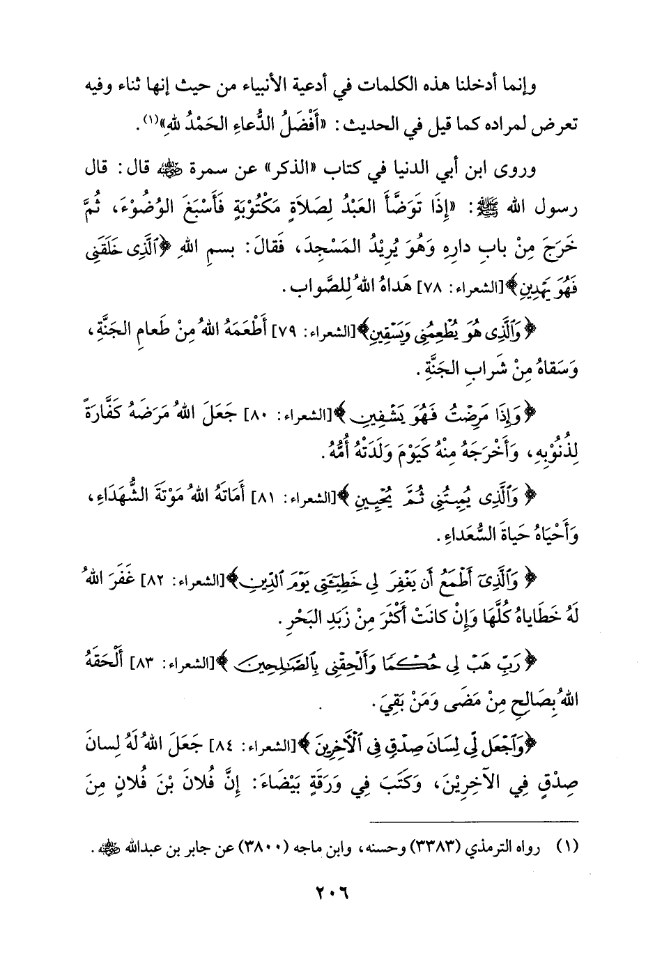 وإنما أدخلنا هذه الكلمات في أدعية الأنبياء من حيث إنها ثناء وفيه تعرض لمراده كما قيل في الحديث: "أَفْضَلُ الدُّعاءِ الحَمْدُ للهِ" (¬1).