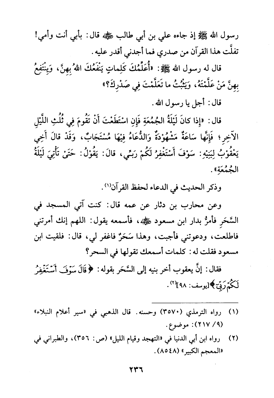 (¬2) رواه ابن أبي الدنيا في "التهجد وقيام الليل" (ص: 356)، والطبراني في "المعجم الكبير" (8548).