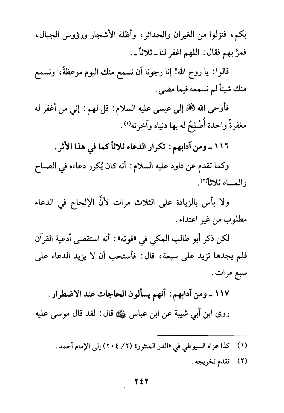 116 - ومن آدابهم: تكرار الدعاء ثلاثاً كما في هذا الأثر.