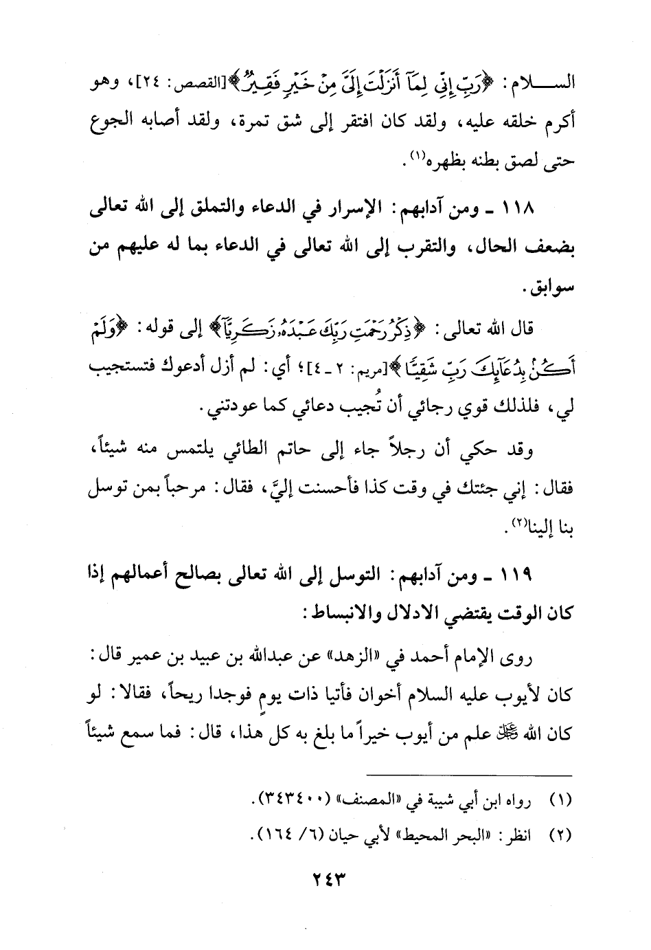 118 - ومن آدابهم: الإسرار في الدعاء والتملق إلى الله تعالى بضعف الحال، والتقرب إلى الله تعالى في الدعاء بما له عليهم من سوابق.