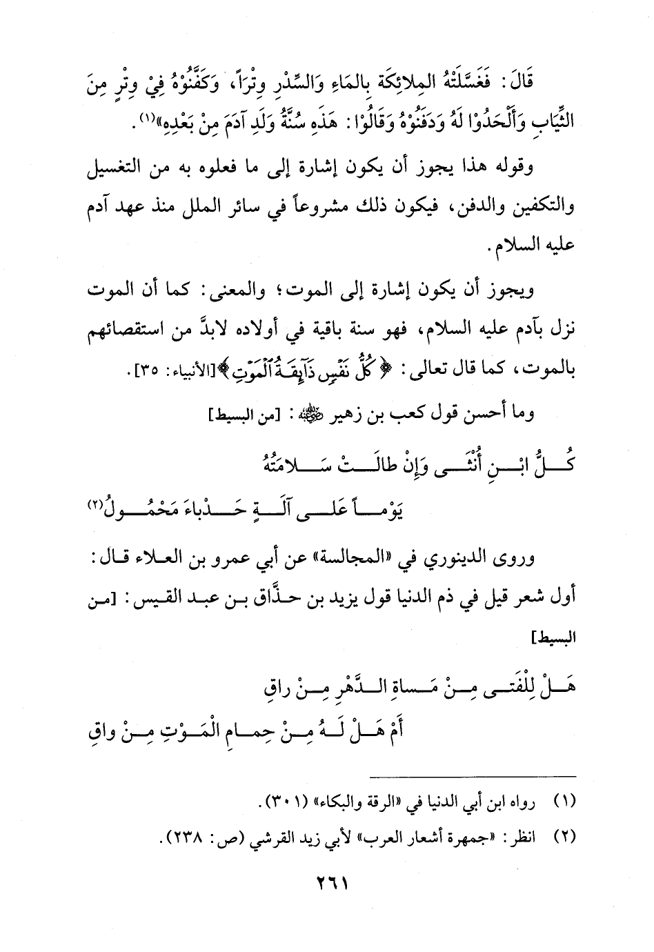 كُلُّ ابْنِ أُنْثَى وَإِنْ طالَتْ سَلامَتُهُ ... يَوْماً عَلى آلَةٍ حَدْباءَ مَحْمُولُ (¬2)