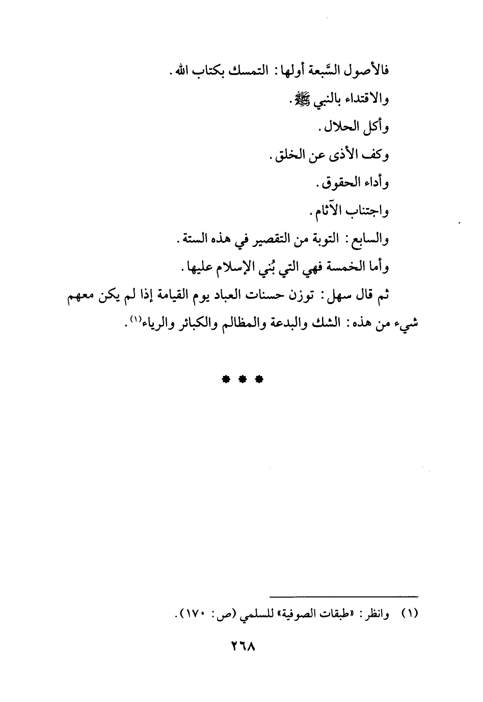 ثم قال سهل: توزن حسنات العباد يوم القيامة إذا لم يكن معهم شيء من هذه: الشك والبدعة والمظالم والكبائر والرياء (¬1).