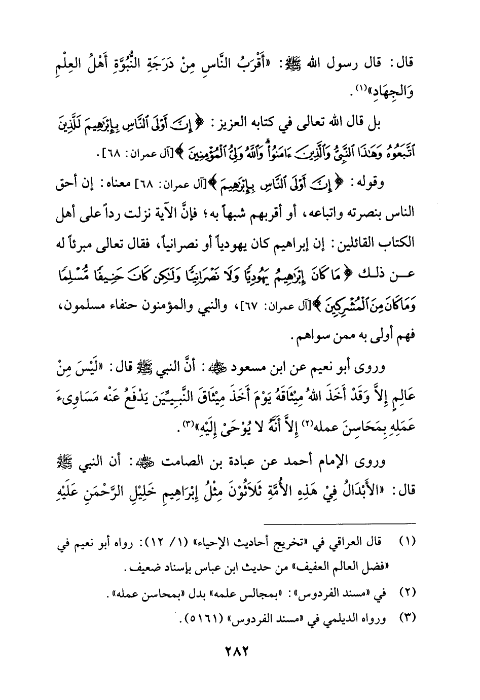 وروى أَبو نعيم عن ابن مسعود - رضي الله عنه -: أنَّ النبي - صلى الله عليه وسلم - قال: "لَيْسَ مِنْ عَالِمٍ إِلاَّ وَقَدْ أَخَذَ اللهُ مِيْثَاقَهُ يَوْمَ أَخَذَ مِيْثَاقَ النَّبِيِّيَن يَدْفَعُ عَنْه مَسَاوِئَ عَمَلِهِ بِمَحَاسِنَ عمله (¬2) إِلاَّ أَنَّهُ لا يُوْحَىْ إِلَيْهِ" (¬3).