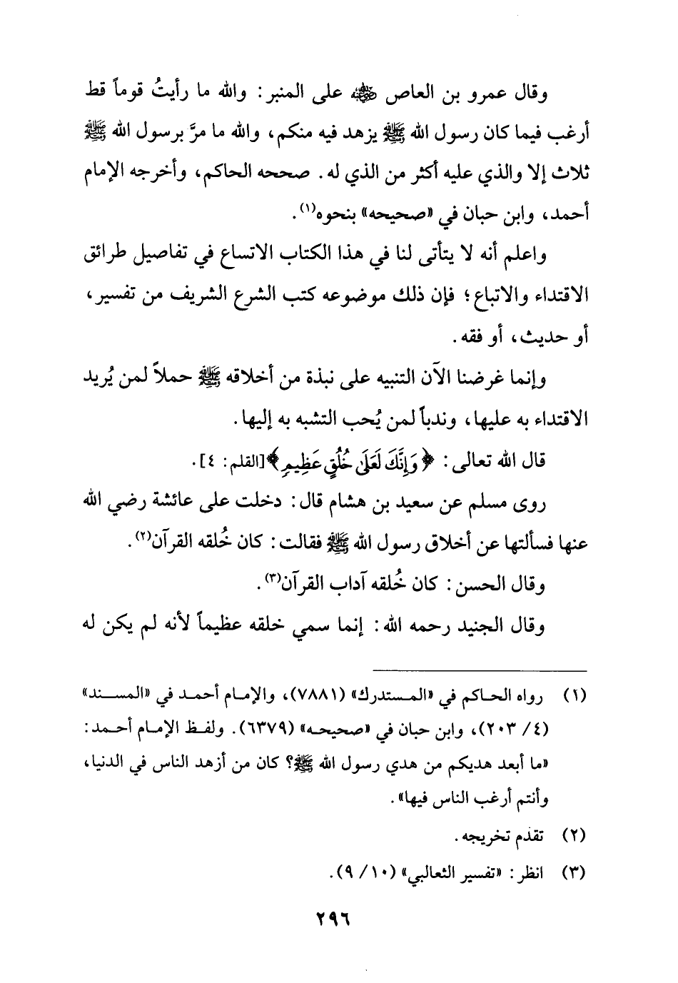 واعلم أنه لا يتأتى لنا في هذا الكتاب الاتساع في تفاصيل طرائق الاقتداء والاتباع؛ فكان ذلك موضوعه كتب الشرع الشريف من تفسير، أو حديث، أو فقه.