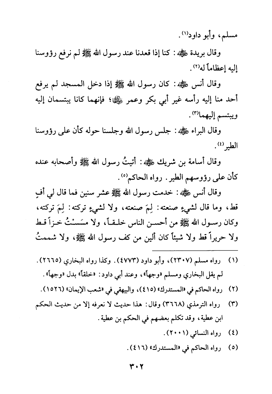 وقال البراء - رضي الله عنه -: جلس رسول الله وجلسنا حوله كأن على رؤوسنا الطير (¬4).