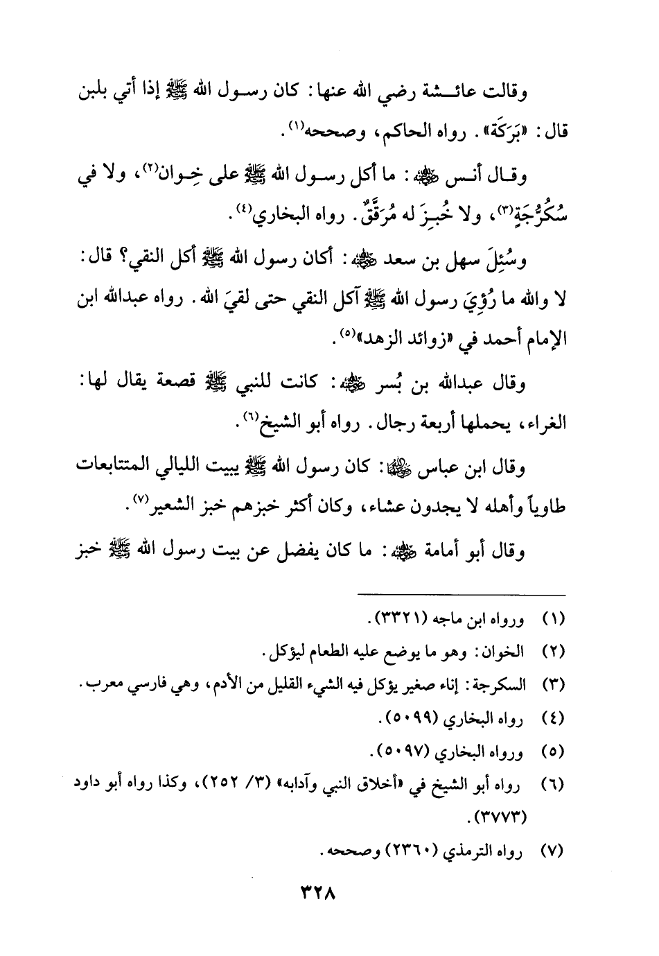 وقال أبو أمامة - رضي الله عنه -: ما كان يفضل عن بيت رسول الله - صلى الله عليه وسلم - خبز