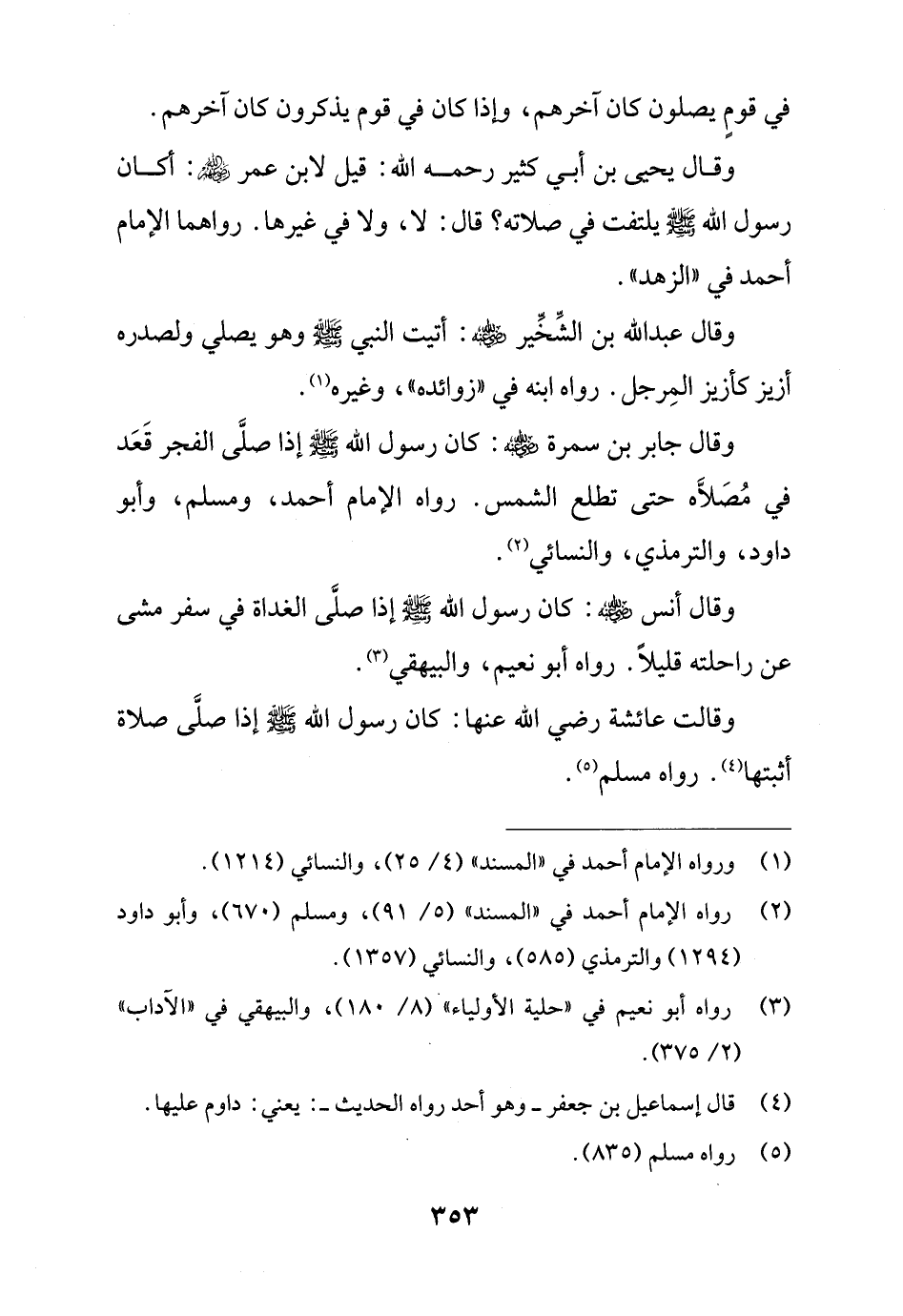 وقالت عائشة رضي الله عنها: كان رسول الله - صلى الله عليه وسلم - إذا صلَّى صلاة أثبتها (¬4). رواه مسلم (¬5).
