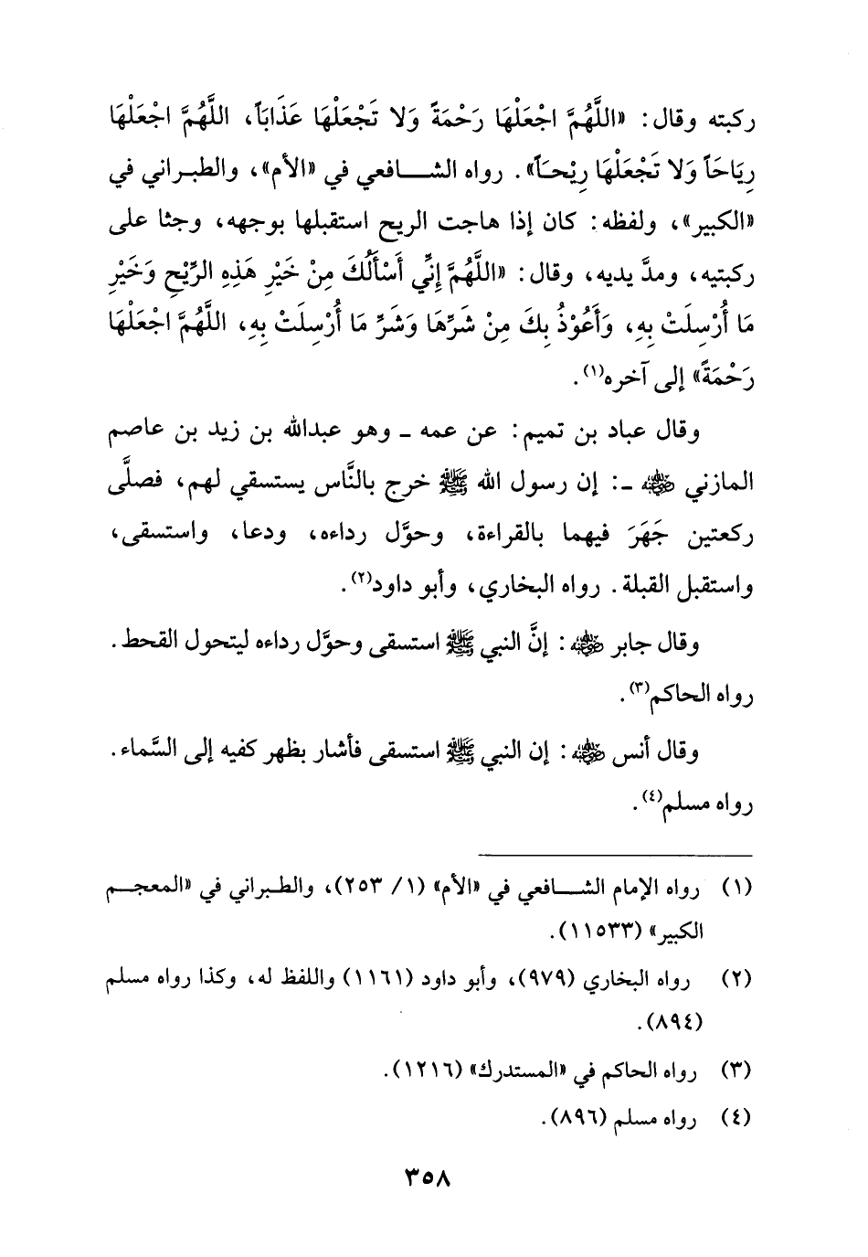 وقال عباد بن تميم: عن عمه - وهو عبد الله بن زيد بن عاصم المازني - رضي الله عنه -: إن رسول الله - صلى الله عليه وسلم - خرج بالنَّاس يستسقي لهم، فصلَّى ركعتين جَهَرَ فيهما بالقراءة، وحوَّل رداءه، ودعا، واستسقى، واستقبل القبلة. رواه البخاري، وأبو داود (¬2).