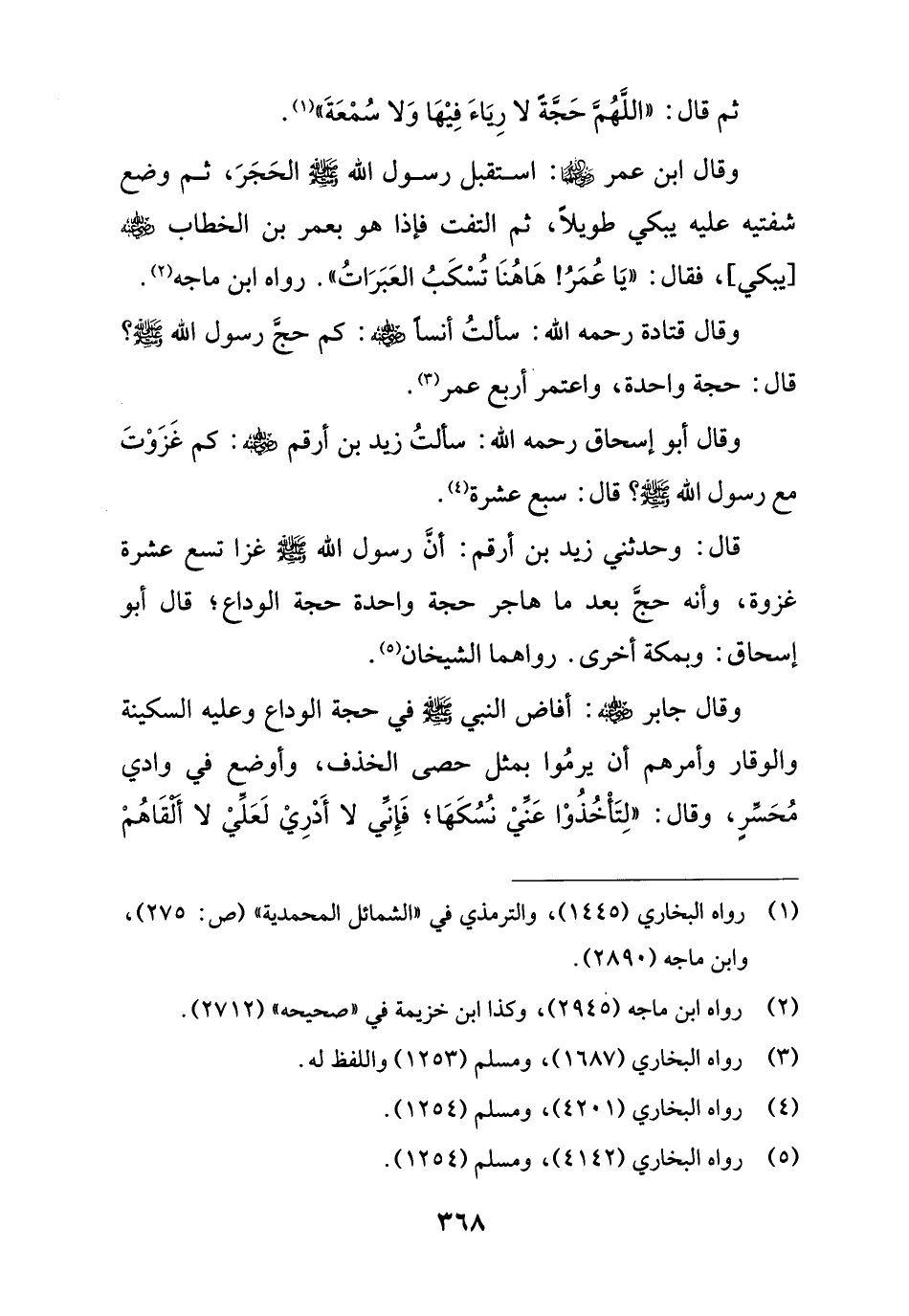 قال: وحدثني زيد بن أرقم: أنَّ رسول الله - صلى الله عليه وسلم - غزا تسع عشرة غزوة، وأنه حجَّ بعد ما هاجر حجة واحدة حجة الوداع؛ قال أبو إسحاق: وبمكة أخرى. رواهما الشيخان (¬5).