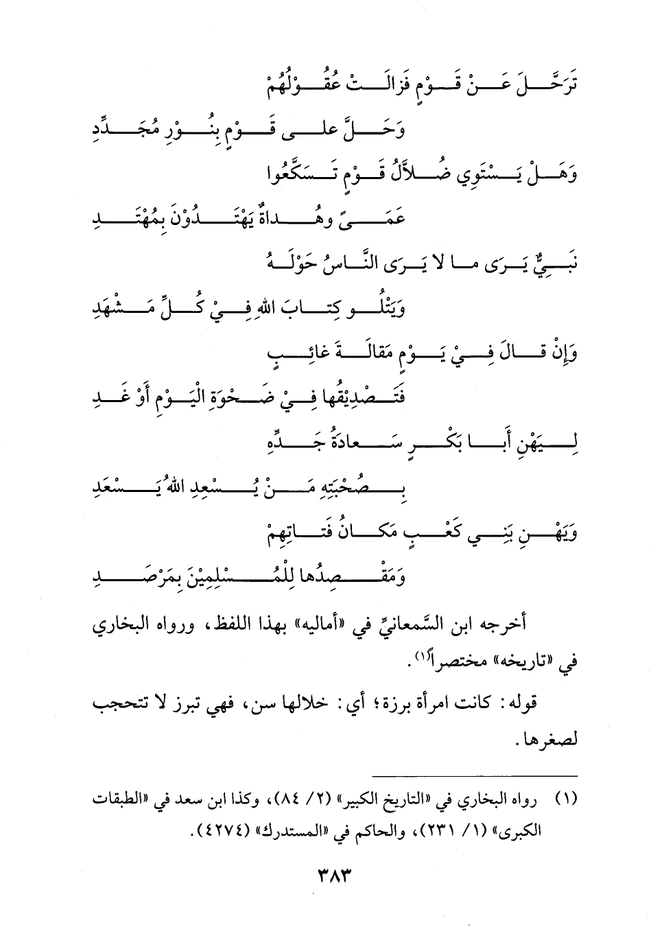 لِيَهْنِ أَبا بَكْرٍ سَعادَةُ جَدِّهِ ... بِصُحْبَتِهِ مَنْ يُسْعِدِ اللهُ يَسْعَدِ