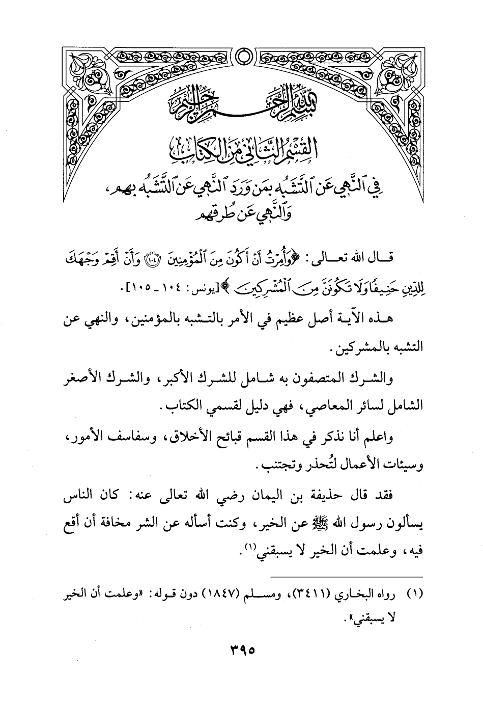 القسم الثاني من الكتاب فِي النَّهي عَن التَّشَبُه بمَن وَرَدَ النَّهي عَن التَّشَبُه بهم, وَالنَّهي عَن طُرقهم