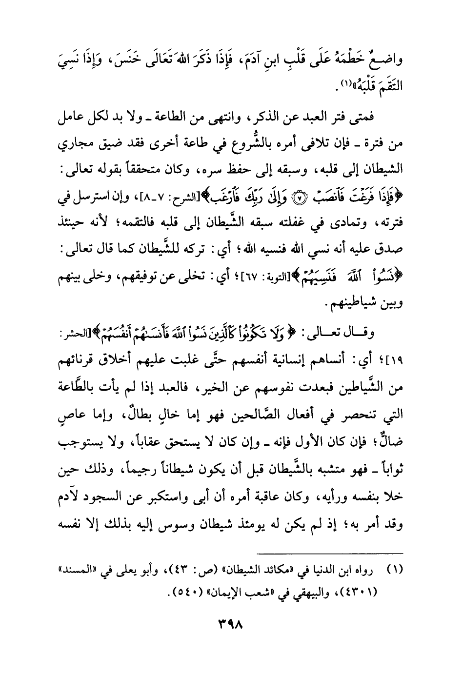 (¬1) رواه ابن الدنيا في "مكائد الشيطان" (ص: 43)، وأبو يعلى في "المسند" (4301)، والبيهقي في "شعب الإيمان" (540).