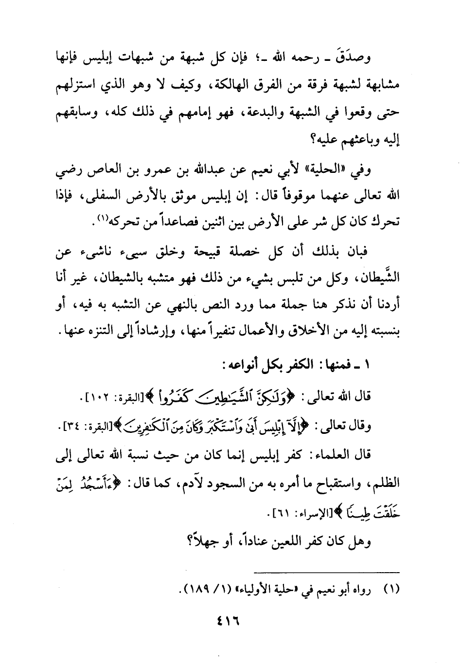 وقال تعالى: {إِلَّا إِبْلِيسَ أَبَى وَاسْتَكْبَرَ وَكَانَ مِنَ الْكَافِرِينَ} [البقرة: 34].