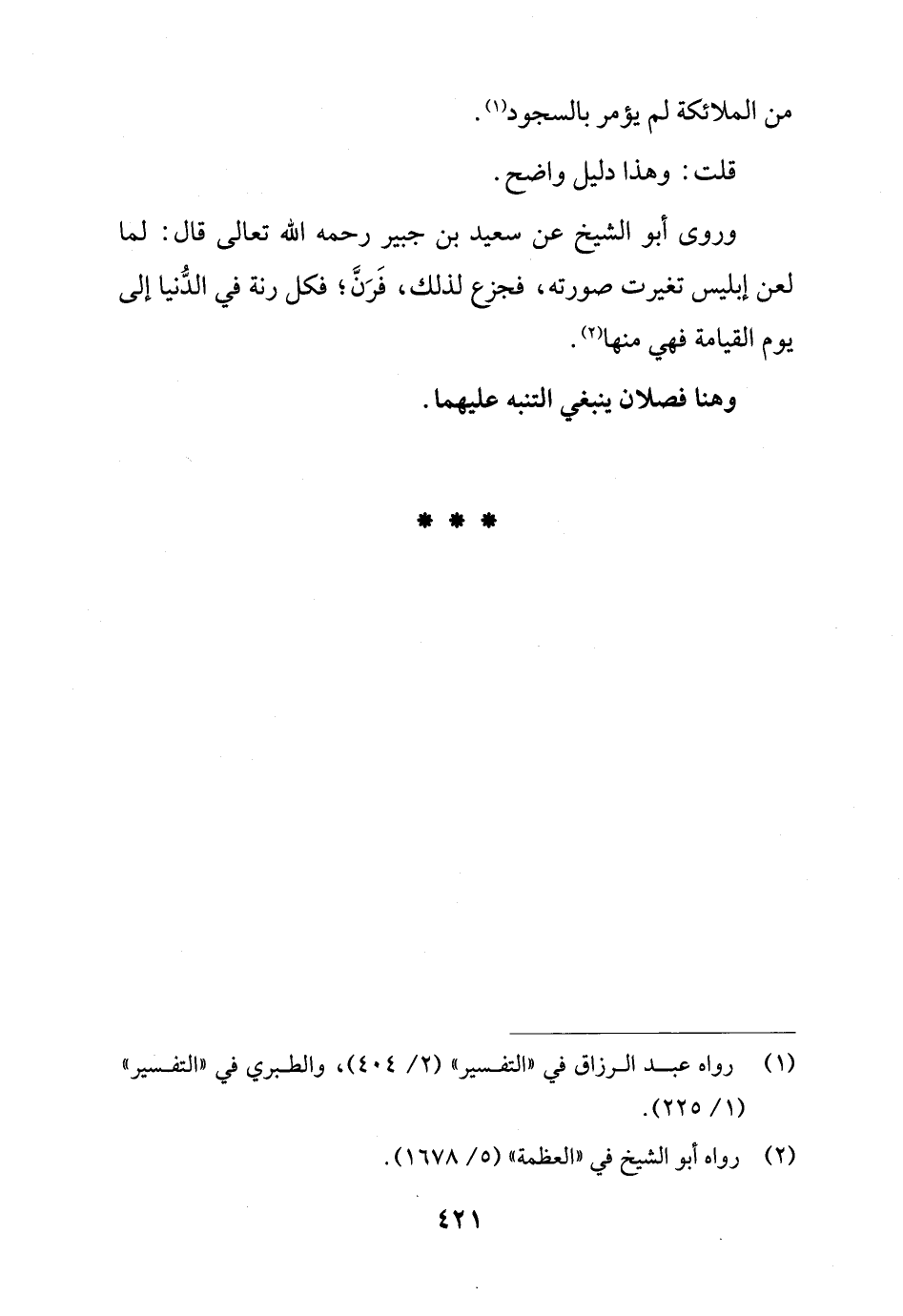 وهنا فصلان ينبغي التنبه عليهما.