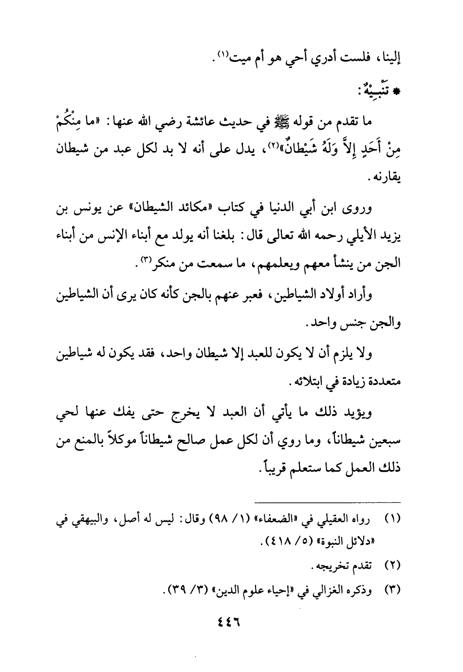 ويؤيد ذلك ما يأتي أن العبد لا يخرج حتى يفك عنها لحي سبعين شيطاناً، وما روي أن لكل عمل صالح شيطاناً موكلاً بالمنع من ذلك العمل كما ستعلم قريباً.
