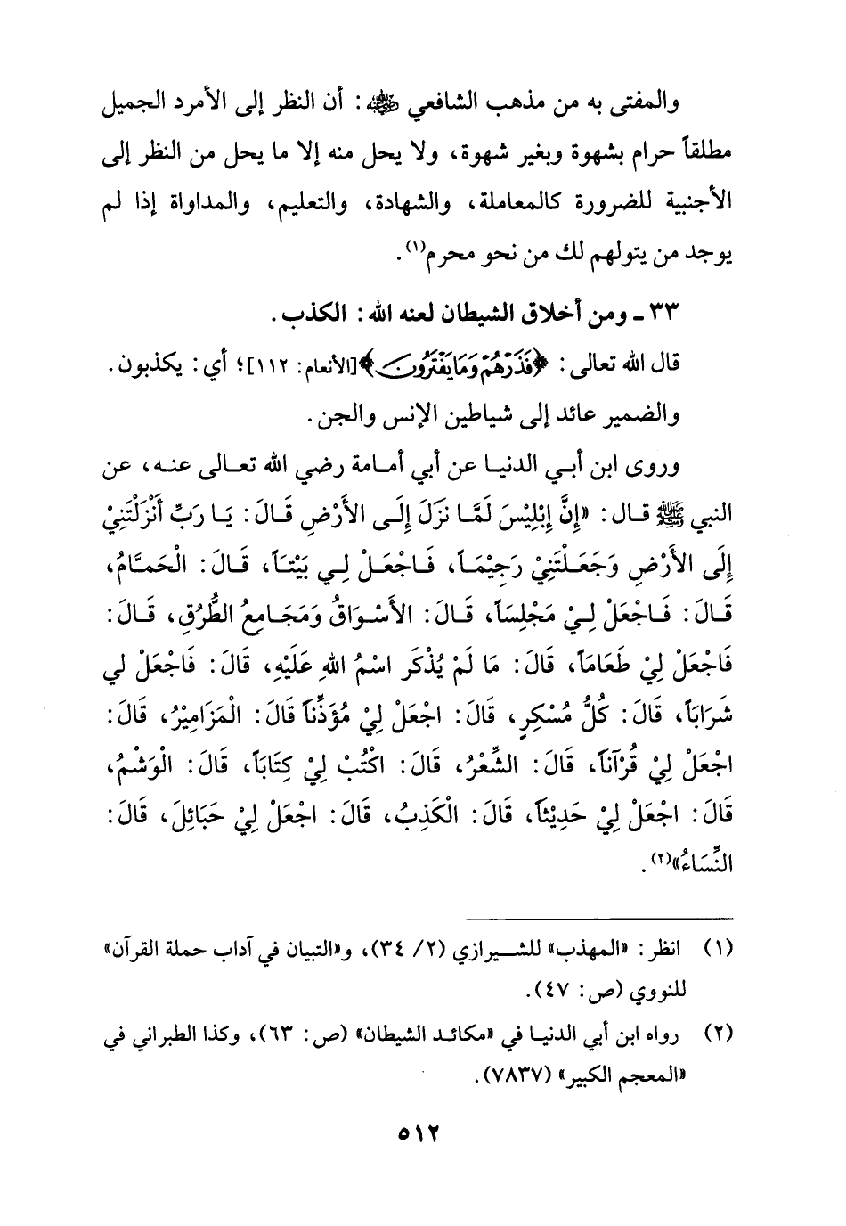 33 - ومن أخلاق الشيطان لعنه الله: الكذب.