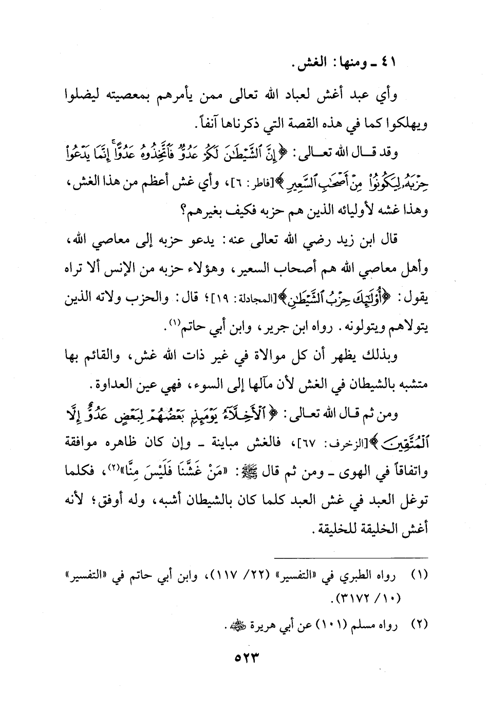 وقد قال الله تعالى: {إِنَّ الشَّيْطَانَ لَكُمْ عَدُوٌّ فَاتَّخِذُوهُ عَدُوًّا إِنَّمَا يَدْعُو حِزْبَهُ لِيَكُونُوا مِنْ أَصْحَابِ السَّعِيرِ} [فاطر: 6]، وأي غش أعظم من هذا الغش، وهذا غشه لأوليائه الذين هم حزبه فكيف بغيرهم؟