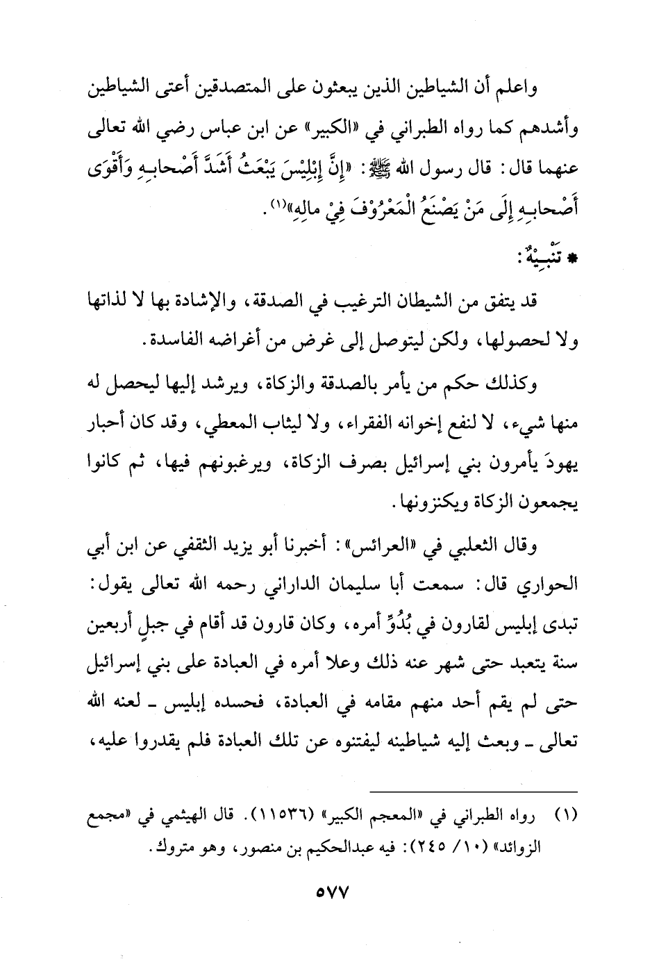 واعلم أن الشياطين الذين يبعثون على المتصدقين أعتى الشياطين وأشدهم كما رواه الطبراني في "الكبير" عن ابن عباس رضي الله تعالى عنهما قال: قال رسول الله - صلى الله عليه وسلم -: "إِنَّ إِبْلِيْسَ يَبْعَثُ أَشَدَّ أَصْحابِهِ وَأَقْوَى أَصْحابِهِ إِلَى مَنْ يَصْنعُ الْمَعْرُوْفَ فِيْ مالِهِ" (¬1).