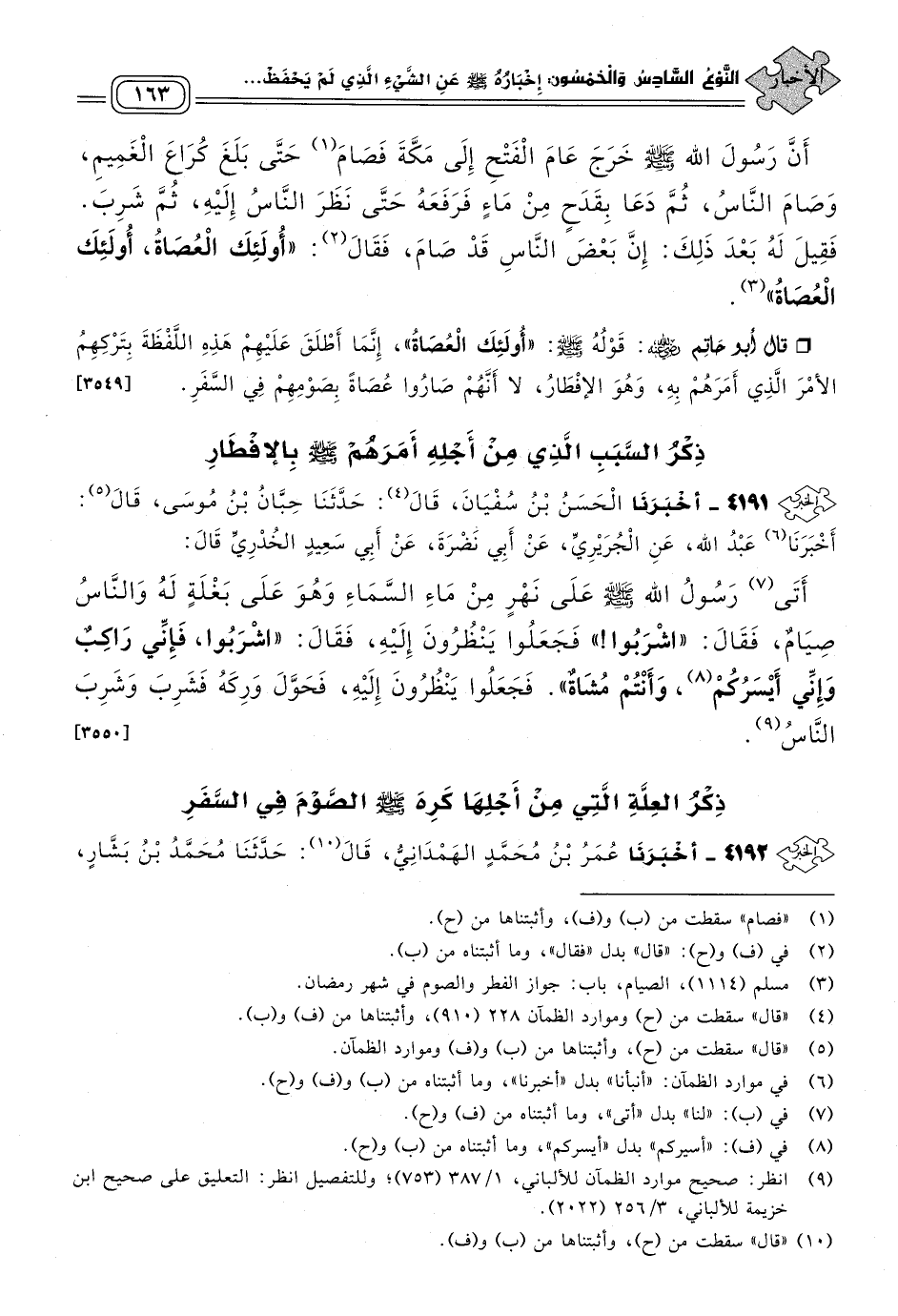 ذِكْرُ الْعِلَّةِ الَّتِي مِنْ أَجْلِهَا كَرِهَ صَلى الله عَلَيه وسَلم الصَّوْمَ فِي السَّفَرِ.