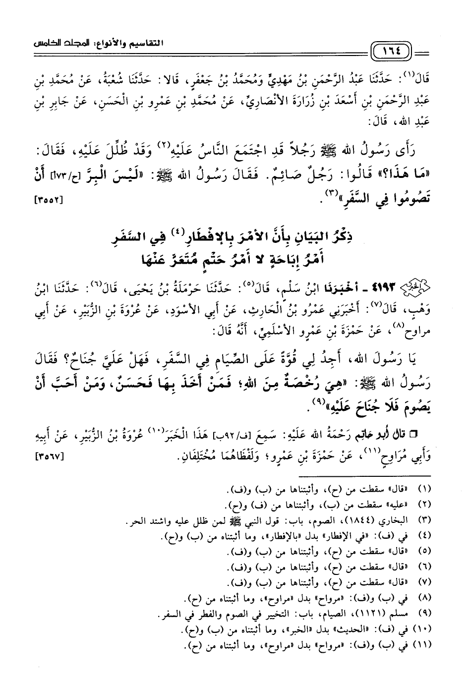 قَالَ أَبُو حَاتِمٍ رَحْمَةُ اللهِ عَلَيْهِ: سَمِعَ هَذَا الْخَبَرَ عُرْوَةُ بْنُ الزُّبَيْرِ، عَنْ أبيه، وَأَبَى مُرَاوِحٍ، عَنْ حَمْزَةَ بْنِ عَمْرٍو، وَلَفْظَاهُمَا مُخْتَلِفَانِ. [٣٥٦٧]