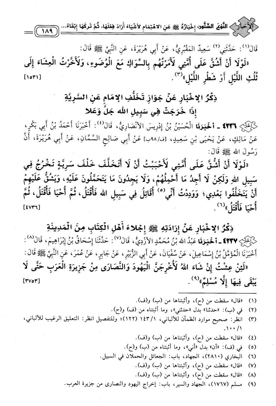 ٤٢٣٦ - أَخبَرنا الْحُسَيْنُ بْنُ إِدْرِيسَ الأَنْصَارِيُّ، قَالَ: أَخبَرنا أَحْمَدُ بْنُ أَبِي بَكْرٍ، عَنْ مَالِكٍ، عَنْ يَحْيَى بْنِ سَعِيدٍ، عَنْ أَبِي صَالِحٍ السَّمَّانِ، عَنْ أَبِي هُرَيْرَةَ، أَنَّ رَسُولَ اللهِ صَلى الله عَلَيه وسَلم قَالَ: "لَوْلَا أَنْ أَشُقَّ عَلَى أُمَّتِي لأَحْبَبْتُ أَنْ لَا أَتَخَلَّفَ خَلْفَ سَرِيَّةٍ تَخْرُجُ فِي سَبِيلِ اللهِ، وَلَكِنْ لَا أَجِدُ مَا أَحْمِلُهُمْ، وَلَا يَجِدُونَ مَا يَتَحَمَّلُونَ عَلَيْهِ وَيَشُقُّ عَلَيْهِمْ أَنْ يَتَخَلَّفُوا بَعْدِي، وَوَدِدْتُ أَنِّي أُقَاتِلُ فِي سَبِيلِ اللهِ فَأُقْتَلُ، ثُمَّ أُحْيَا فَأُقْتَلُ، ثُمَّ أُحْيَا فَأُقْتَلُ". [٤٧٣٦]