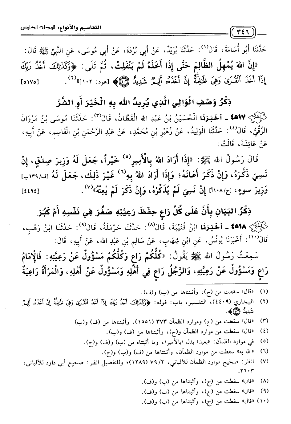 ذِكْرُ وَصْفِ الْوَالِي الَّذِي يُرِيدُ اللهُ بِهِ الْخَيْرَ أَوِ الشَّرَّ.