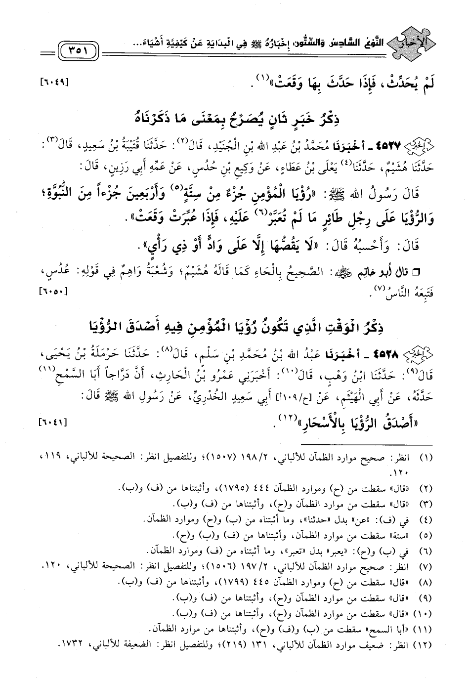 ذِكْرُ الْوَقْتِ الَّذِي تَكُونُ رُؤْيَا الْمُؤْمِنِ فِيهِ أَصْدَقَ الرُّؤْيَا.