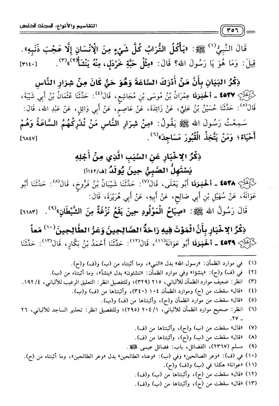 ٤٥٣٧ - أَخبَرنا عِمْرَانُ بْنُ مُوسَى بْنِ مُجَاشِعٍ، قَالَ: حَدثنا عُثْمَانُ بْنُ أَبِي شَيْبَةَ، قَالَ: حَدثنا حُسَيْنُ بْنُ عَلِيٍّ، عَنْ زَائِدَةَ، عَنْ عَاصِمٍ، عَنْ أَبِي وَائِلٍ، عَنْ عَبْدِ اللهِ، قَالَ: سَمِعْتُ رَسُولَ اللهِ صَلى الله عَلَيه وسَلم يَقُولُ: "مِنْ شِرَارِ النَّاسِ مَنْ تُدْرِكُهُمُ السَّاعَةُ وَهُمْ أَحْيَاءٌ، وَمَنْ يَتَّخِذُ الْقُبُورَ مَسَاجِدَ". [٦٨٤٧]