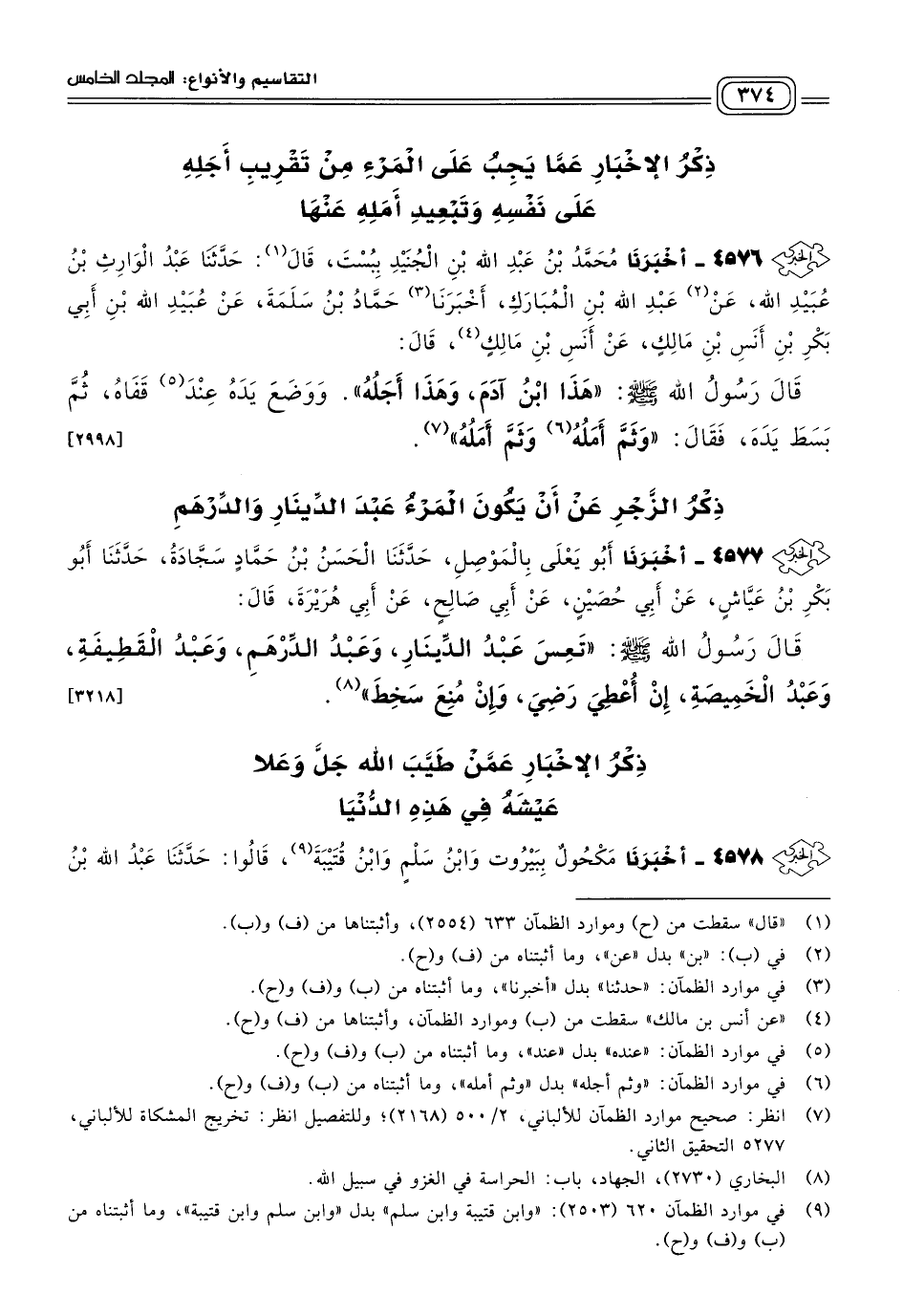ذِكْرُ الإِخْبَارِ عَمَّا يَجِبُ عَلَى الْمَرْءِ مِنْ تَقْرِيبِ أَجَلِهِ عَلَى نَفْسِهِ وَتَبْعِيدِ أَمَلِهِ عَنْهَا.