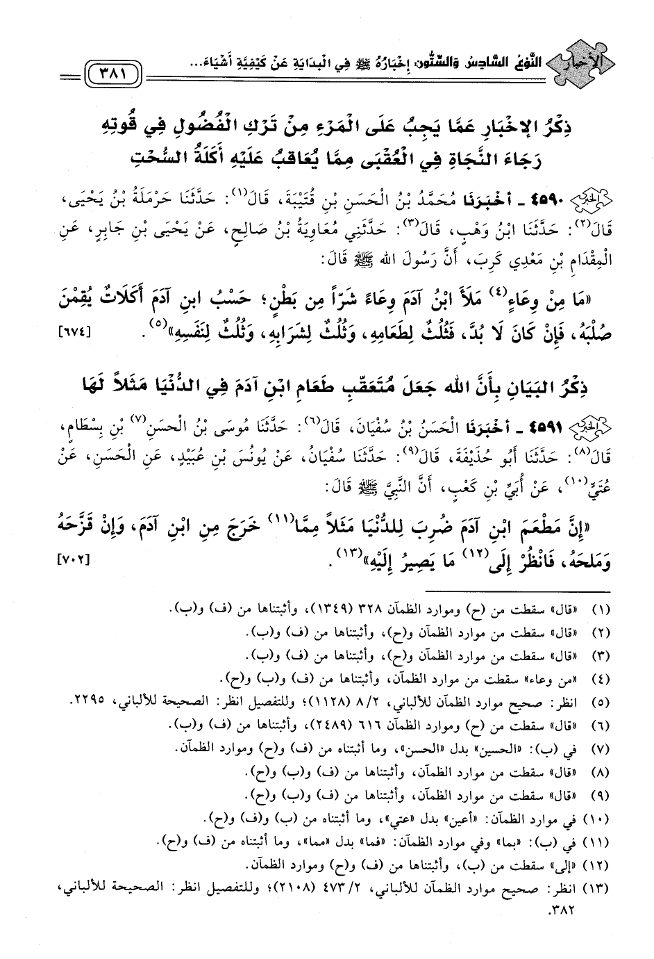 ذِكْرُ الإِخْبَارِ عَمَّا يَجِبُ عَلَى الْمَرْءِ مِنْ تَرْكِ الْفُضُولِ فِي قُوَّتِهِ رَجَاءَ النَّجَاةِ فِي الْعُقْبَى مِمَّا يُعَاقَبُ عَلَيْهِ أَكَلَةُ السُّحْتِ.
