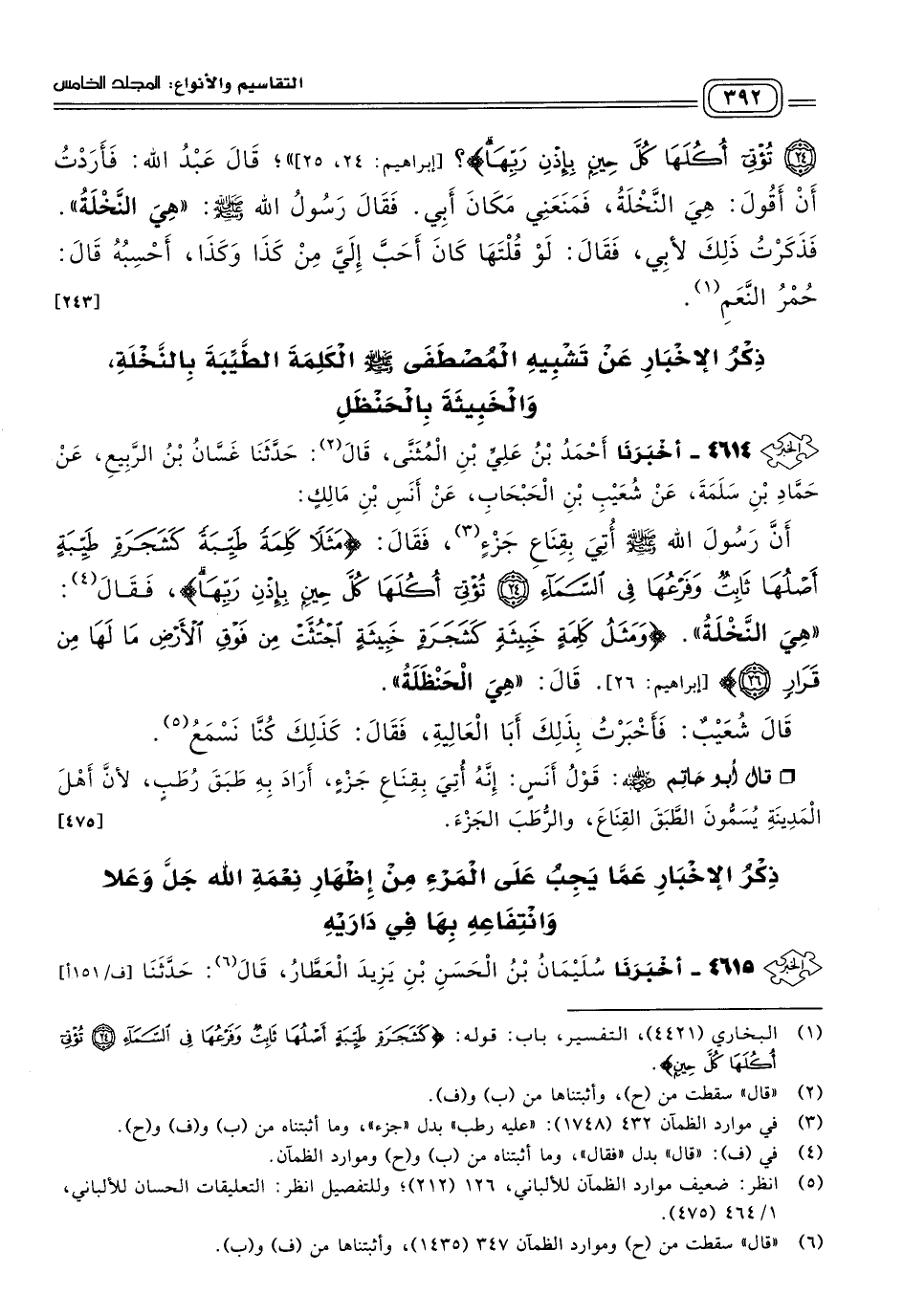 ذِكْرُ الإِخْبَارِ عَنْ تَشْبِيهِ الْمُصْطَفَى صَلى الله عَلَيه وسَلم الْكَلِمَةَ الطَّيِّبَةَ بِالنَّخْلَةِ، وَالْخَبِيثَةَ بِالْحَنْظَلِ.