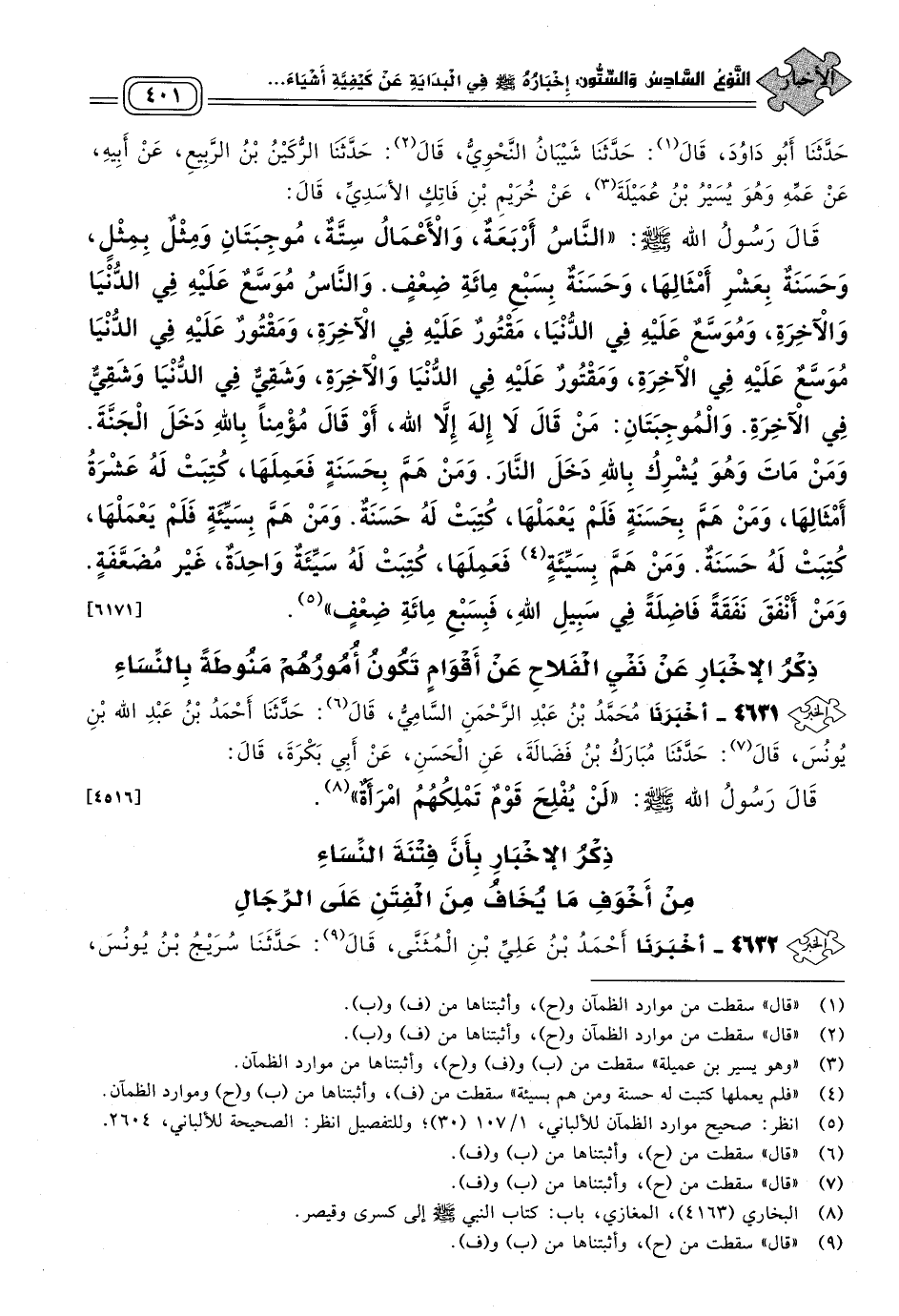 ذِكْرُ الإِخْبَارِ عَنْ نَفْيِ الْفَلَاحِ عَنْ أَقْوَامٍ تَكُونُ أُمُورُهُمْ مَنْوطَةً بِالنِّسَاءِ.