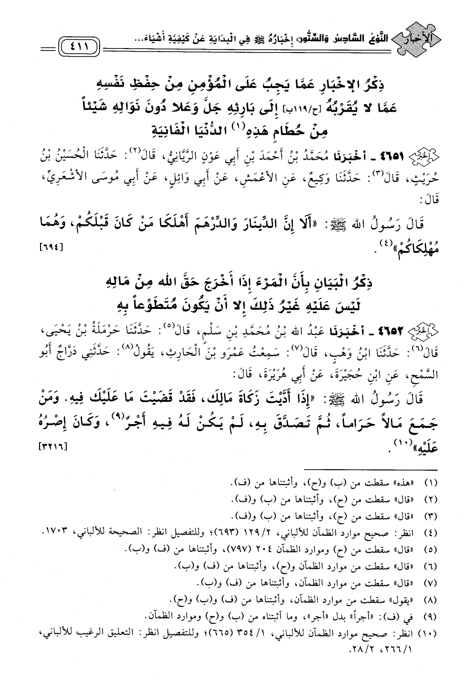 ذِكْرُ الإِخْبَارِ عَمَّا يَجِبُ عَلَى الْمُؤْمِنِ مِنْ حِفْظِ نَفْسِهِ عَمَّا لَا يُقَرِّبُهُ إِلَى بَارِئِهِ جَلَّ وَعَلَا دُونَ نَوَالِهِ شَيْئًا مِنْ حُطَامِ هذه الدُّنْيَا الْفَانِيَةِ.