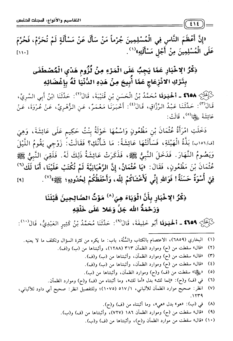 ذِكْرُ الإِخْبَارِ بِأَنَّ الْوَبَاءَ هِيَ مَوْتُ الصَّالِحِينَ قَبْلَنَا، وَرَحْمَةُ اللهِ جَلَّ وَعَلَا عَلَى خَلْقِهِ.