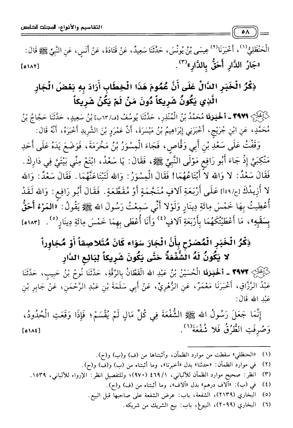ذِكْرُ الْخَبَرِ الدَّالِّ عَلَى أَنَّ عُمُومَ هَذَا الْخِطَابِ أَرَادَ بِهِ بَعْضَ الْجَارِ الَّذِي يَكُونُ شَرِيكًا دُونَ مَنْ لَمْ يَكُنْ شَرِيكًا.