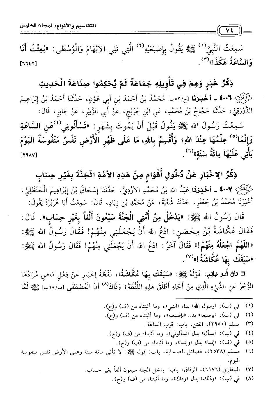 ذِكْرُ الإِخْبَارِ عَنْ دُخُولِ أَقْوَامٍ مِنْ هَذِهِ الأُمَّةِ الْجَنَّةَ بِغَيْرِ حِسَابٍ.