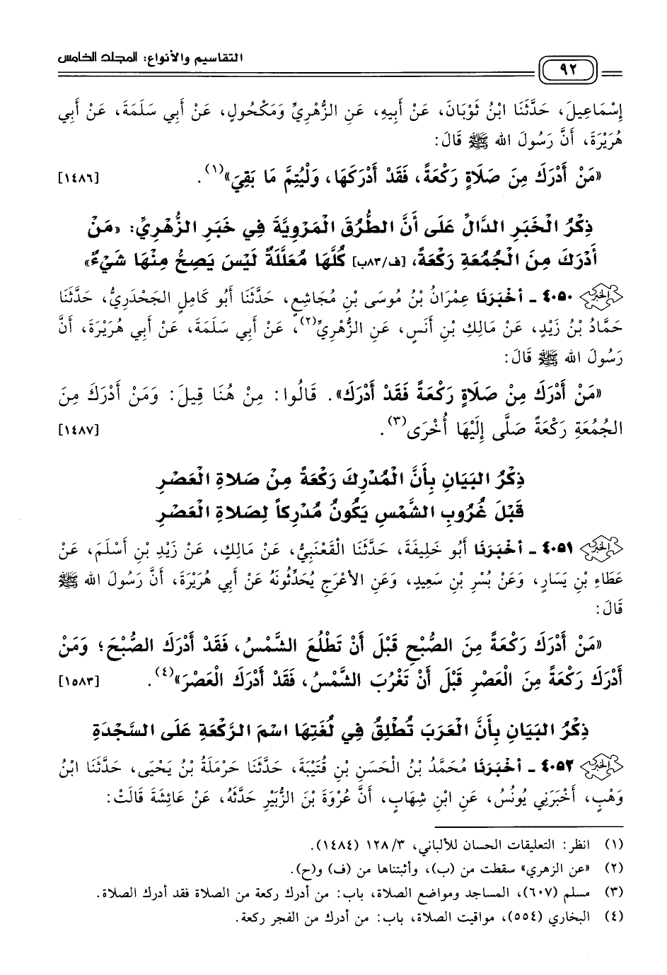 ٤٠٥٠ - أَخبَرنا عِمْرَانُ بْنُ مُوسَى بْنِ مُجَاشِعٍ، حَدثنا أَبُو كَامِلٍ الْجَحْدَرِيُّ، حَدثنا حَمَّادُ بْنُ زَيْدٍ، عَنْ مَالِكِ بْنِ أَنَسٍ، عَنِ الزُّهْرِيِّ، عَنْ أَبِي سَلَمَةَ، عَنْ أَبِي هُرَيْرَةَ، أَنَّ رَسُولَ اللهِ صَلى الله عَلَيه وسَلم قَالَ: "مَنْ أَدْرَكَ مِنْ صَلَاةٍ رَكْعَةً فَقَدْ أَدْرَكَ". قَالُوا: مِنْ هُنَا قِيلَ: وَمَنْ أَدْرَكَ مِنَ الْجُمُعَةِ رَكْعَةً صَلَّى إِلَيْهَا أُخْرَى. [١٤٨٧]