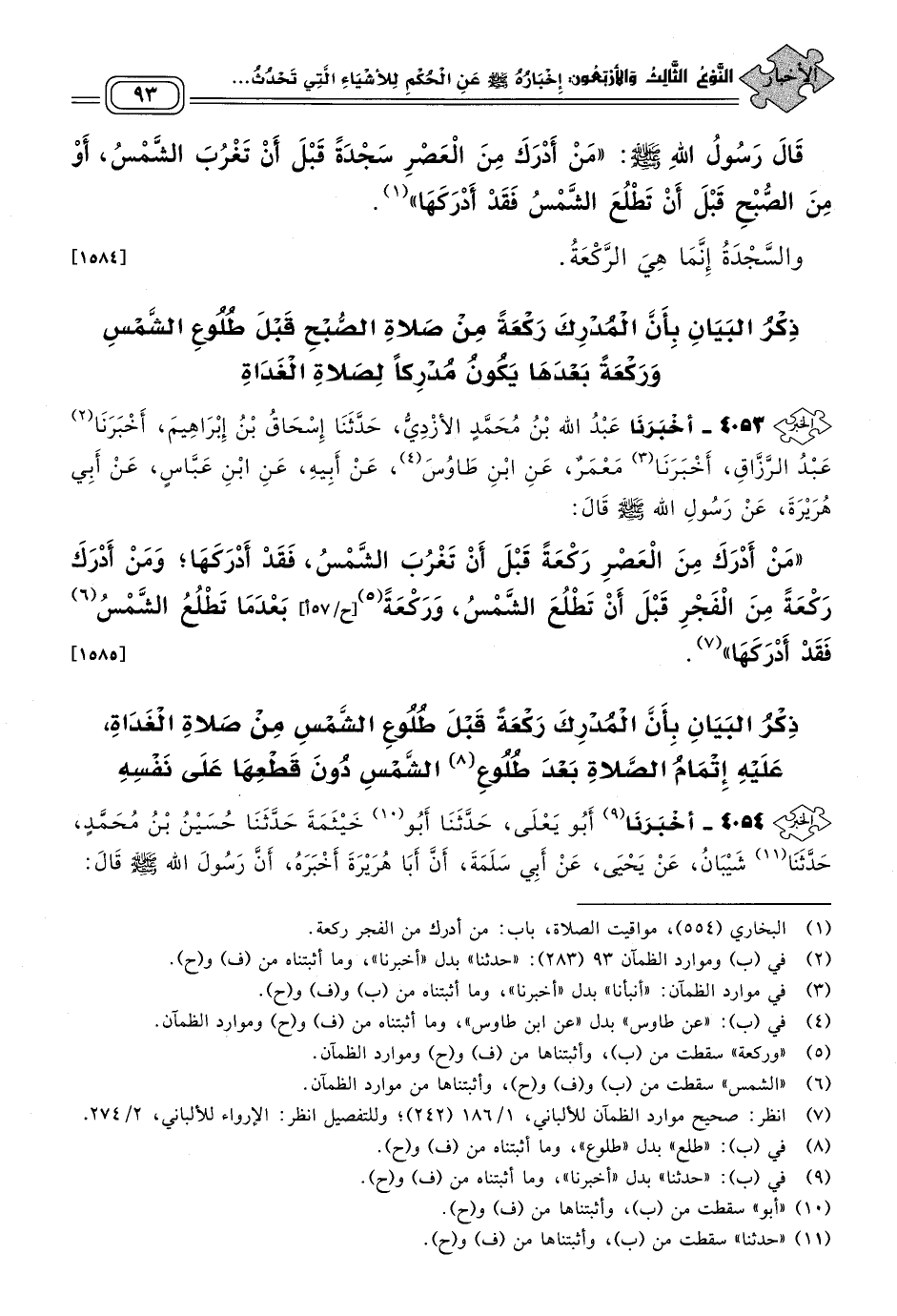 ٤٠٥٣ - أَخبَرنا عَبْدُ اللهِ بْنُ مُحَمَّدٍ الأَزْدِيُّ، حَدثنا إِسْحَاقُ بْنُ إِبْرَاهِيمَ، أَخبَرنا عَبْدُ الرَّزَّاقِ، أَخبَرنا مَعْمَرٌ، عَنِ ابْنِ طَاوُسٍ، عَنْ أَبِيهِ، عَنِ ابْنِ عَبَّاسٍ، عَنْ أَبِي هُرَيْرَةَ، عَنْ رَسُولِ اللهِ صَلى الله عَلَيه وسَلم، قَالَ: "مَنْ أَدْرَكَ مِنَ الْعَصْرِ رَكْعَةً قَبْلَ أَنْ تَغْرُبَ الشَّمْسُ فَقَدْ أَدْرَكَهَا، وَمَنْ أَدْرَكَ رَكْعَةً مِنَ الْفَجْرِ قَبْلَ أَنْ تَطْلُعَ الشَّمْسُ وَرَكْعَةً بَعْدَمَا تَطْلُعُ الشَّمْسُ فَقَدْ أَدْرَكَهَا". [١٥٨٥]