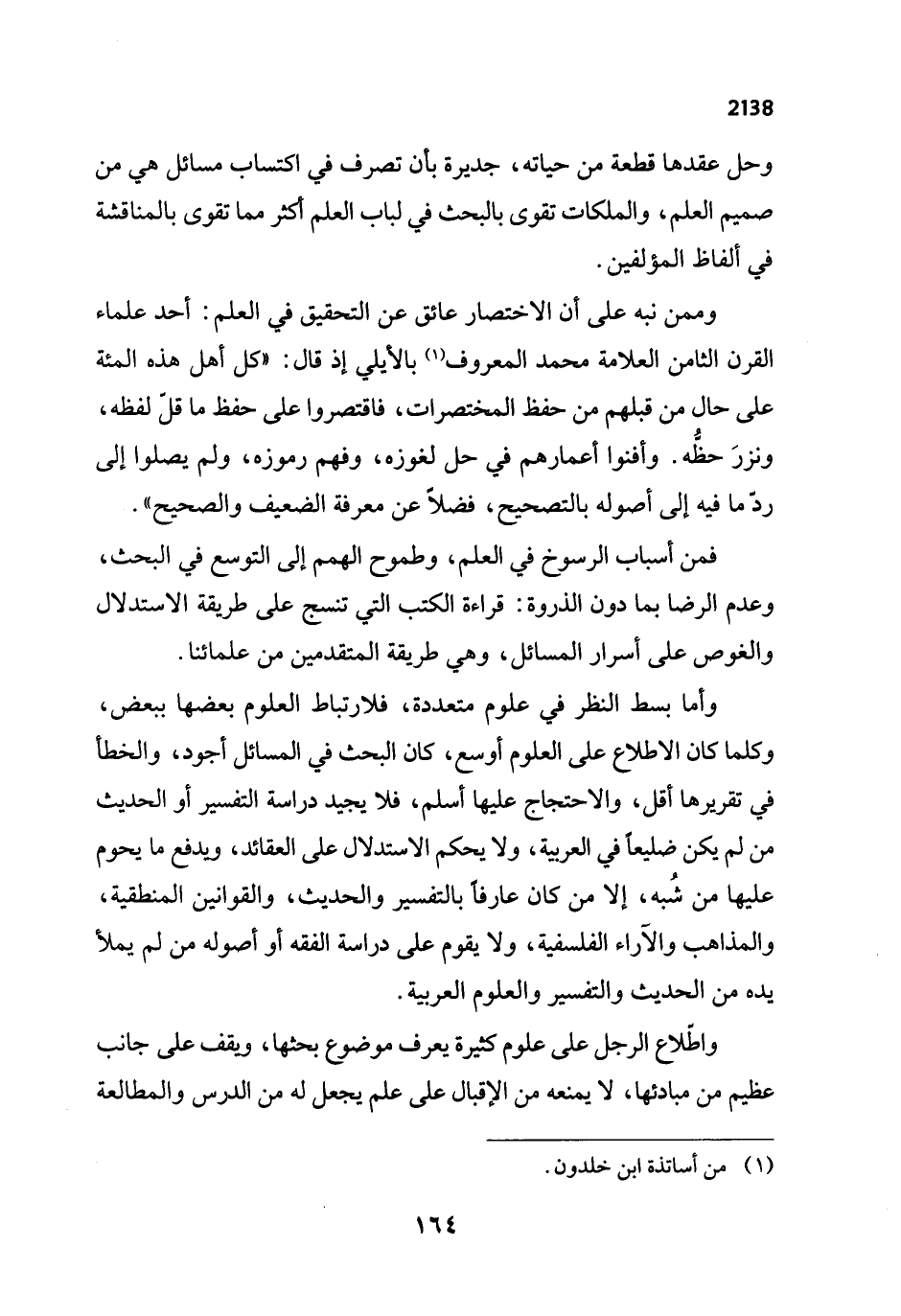 واطّلاع الرجل على علوم كثيرة يعرف موضوع بحثها، ويقف على جانب عظيم من مبادئها، لا يمنعه من الإقبال على علم يجعل له من الدرس والمطالعة