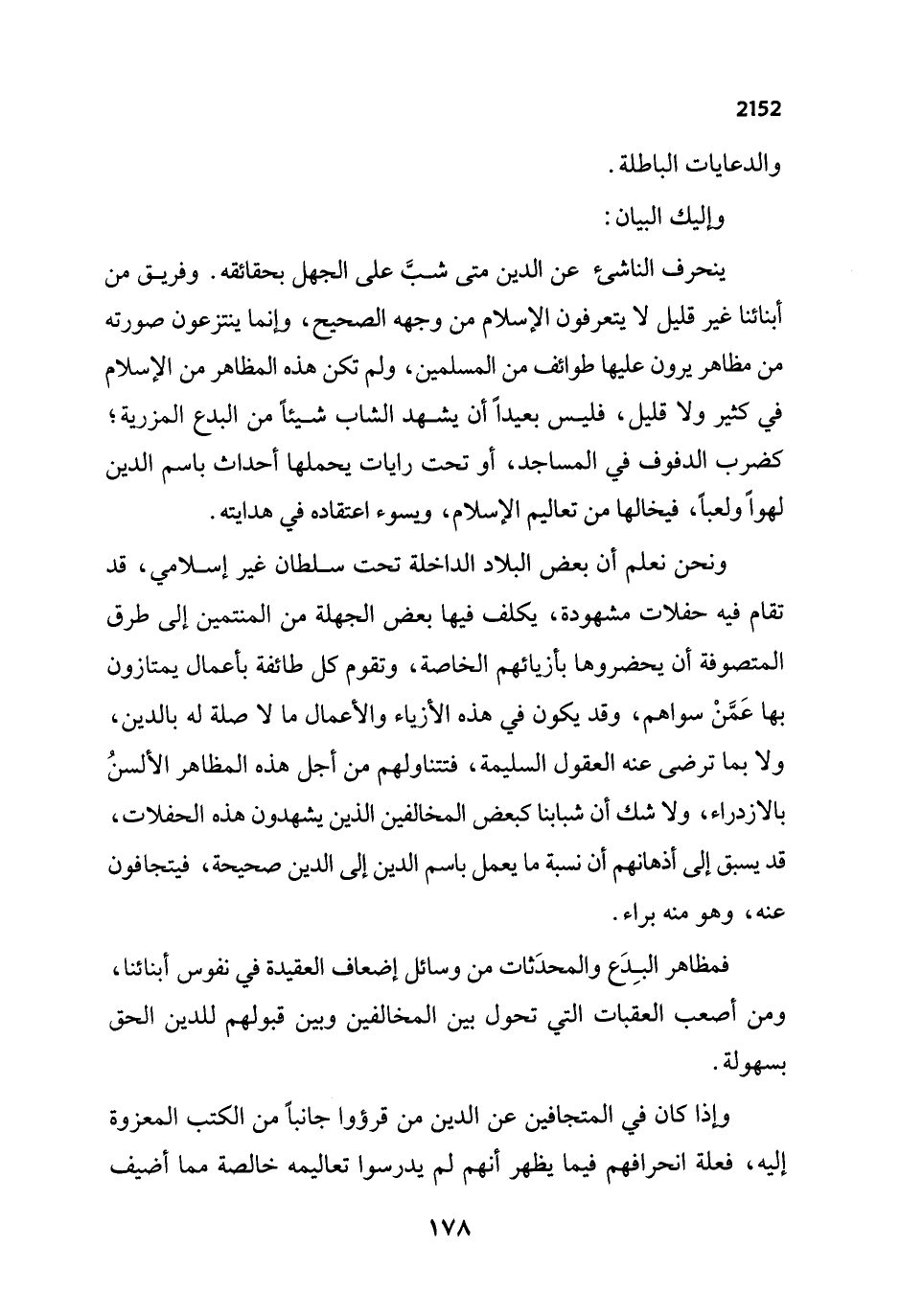 ونحن نعلم أن بعض البلاد الداخلة تحت سلطان غير إسلامي، قد تقام فيه حفلات مشهودة، يكلف فيها بعض الجهلة من المنتمين إلى طرق المتصوفة أن يحضروها بأزيائهم الخاصة، وتقوم كل طائفة بأعمال يمتازون بها عَمَّنْ سواهم، وقد يكون في هذه الأزياء والأعمال ما لا صلة له بالدين، ولا بما ترضى عنه العقول السليمة، فتتناولهم من أجل هذه المظاهر الألسنُ بالازدراء، ولا شك أن شبابنا كبعض المخالفين الذين يشهدون هذه الحفلات، قد يسبق إلى أذهانهم أن نسبة ما يعمل باسم الدين إلى الدين صحيحة، فيتجافون عنه، وهو منه براء.