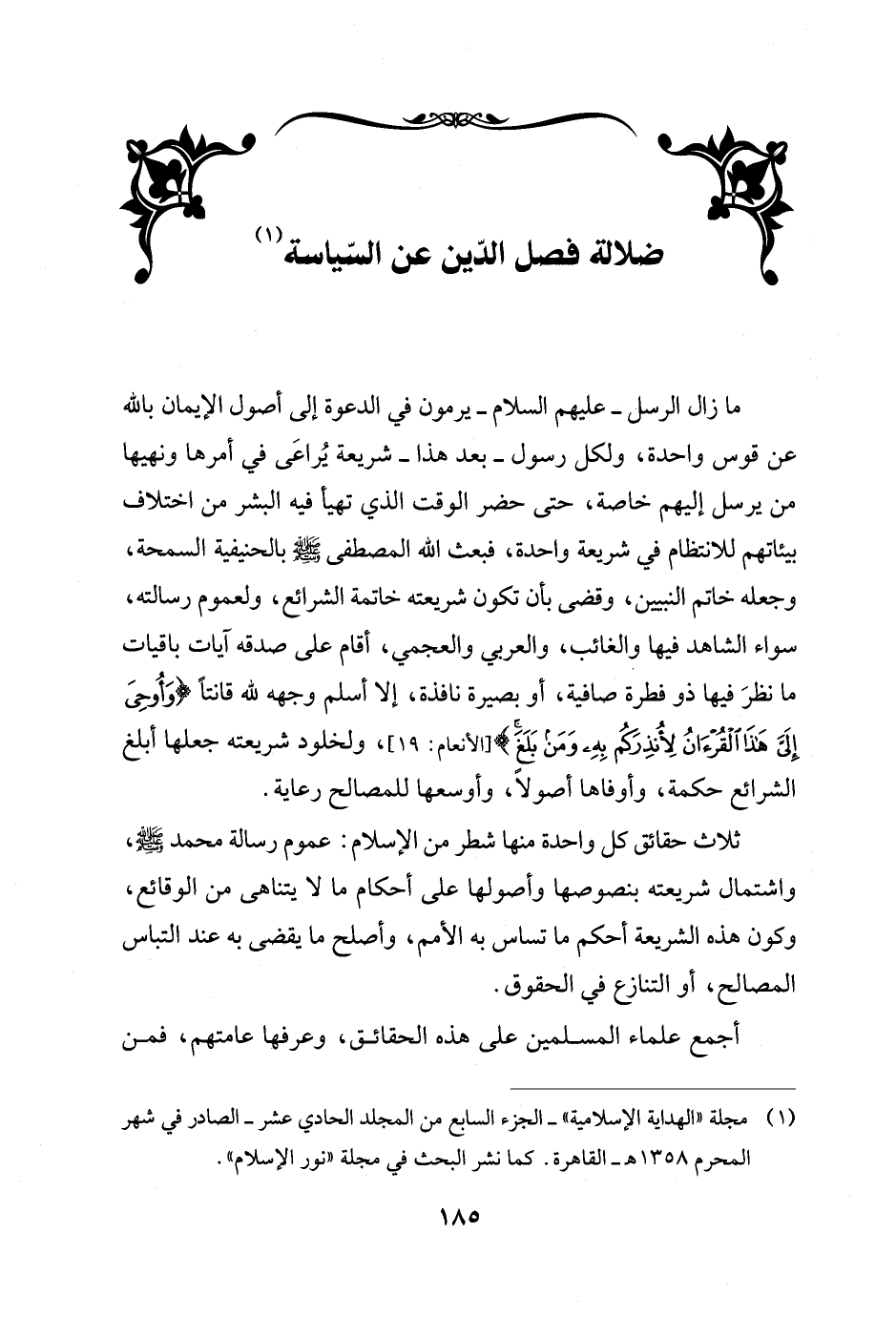 ضلالة فصل الدّين عن السّياسة (¬1)