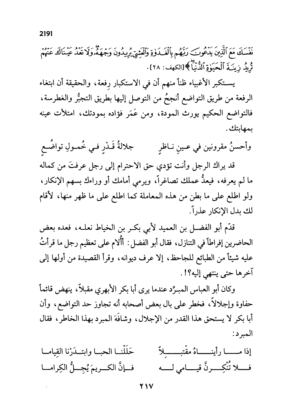 يستكبر الأغبياء ظناً منهم أن في الاستكبار رِفعة، والحقيقة أن ابتغاء الرفعة من طريق التواضع أنجحُ من التوصل إليها بطريق التجبُّر والغطرسة، فالتواضع الحكيم يورث المودة، ومن عَمَر فؤاده بمودتك، امتلأت عينه بمهابتك.
