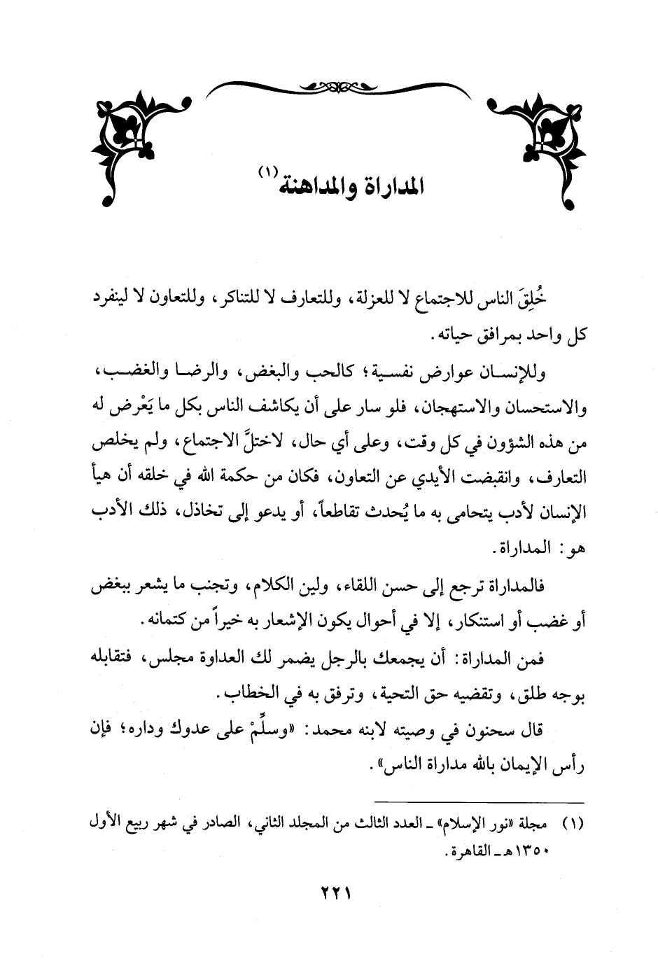 (¬1) مجلة "نور الإِسلام" - العدد الثالث من المجلد الثاني، الصادر في شهر ربيع الأول 1350 هـ - القاهرة.