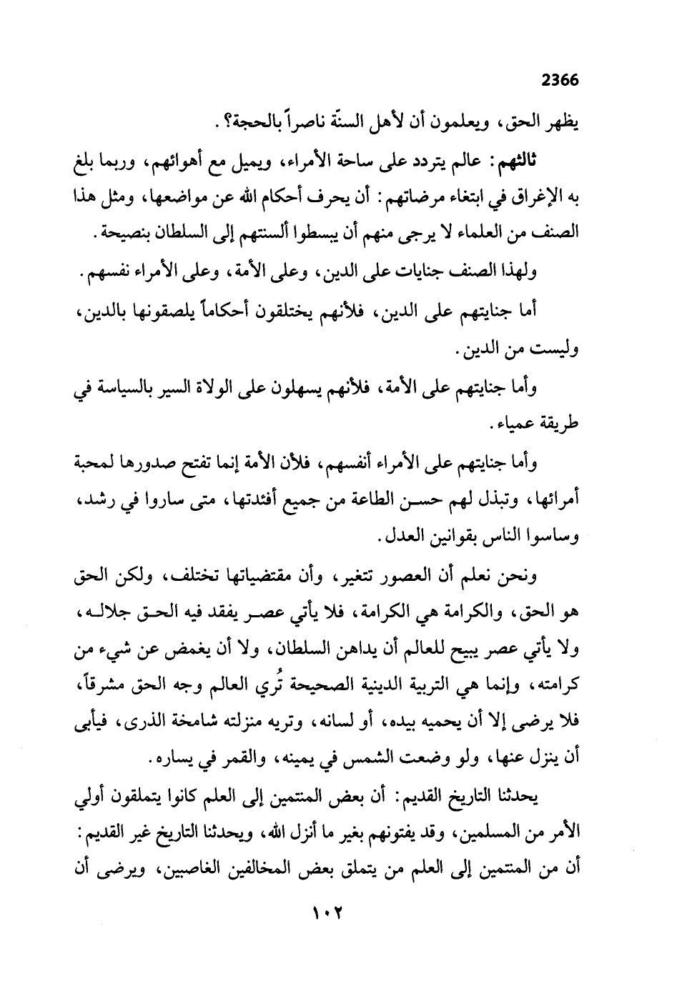 ثالثهم: عالم يتردد على ساحة الأمراء، ويميل مع أهوائهم، وربما بلغ به الإغراق في ابتغاء مرضاتهم: أن يحرف أحكام الله عن مواضعها، ومثل هذا الصنف من العلماء لا يرجى منهم أن يبسطوا ألسنتهم إلى السلطان بنصيحة.