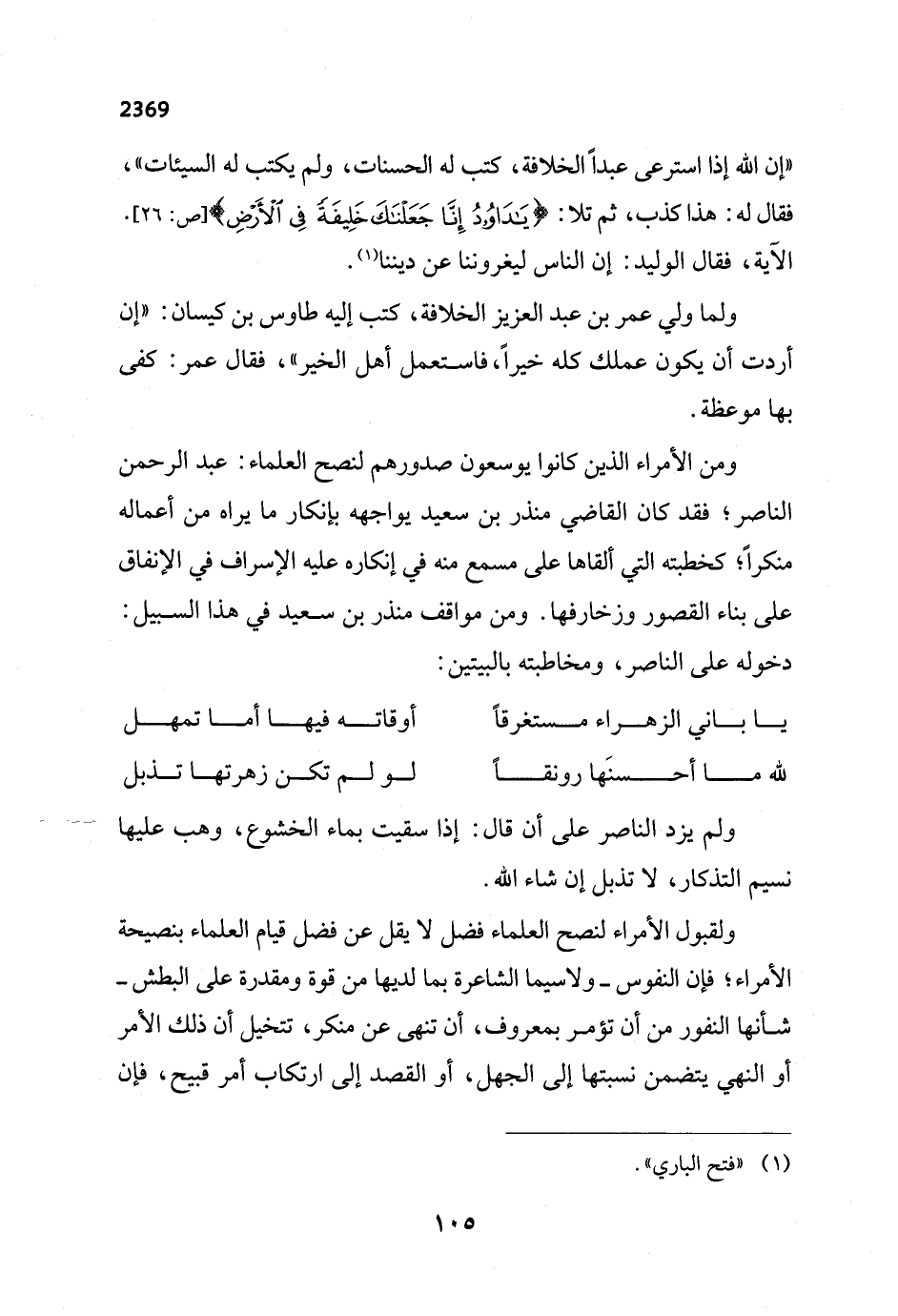 "إن الله إذا استرعى عبداً الخلافة، كتب له الحسنات، ولم يكتب له السيئات"، فقال له: هذا كذب، ثم تلا: {يَادَاوُودُ إِنَّا جَعَلْنَاكَ خَلِيفَةً فِي الْأَرْضِ} [ص: 26]. الآية، فقال الوليد: إن الناس ليغروننا عن ديننا (¬1).