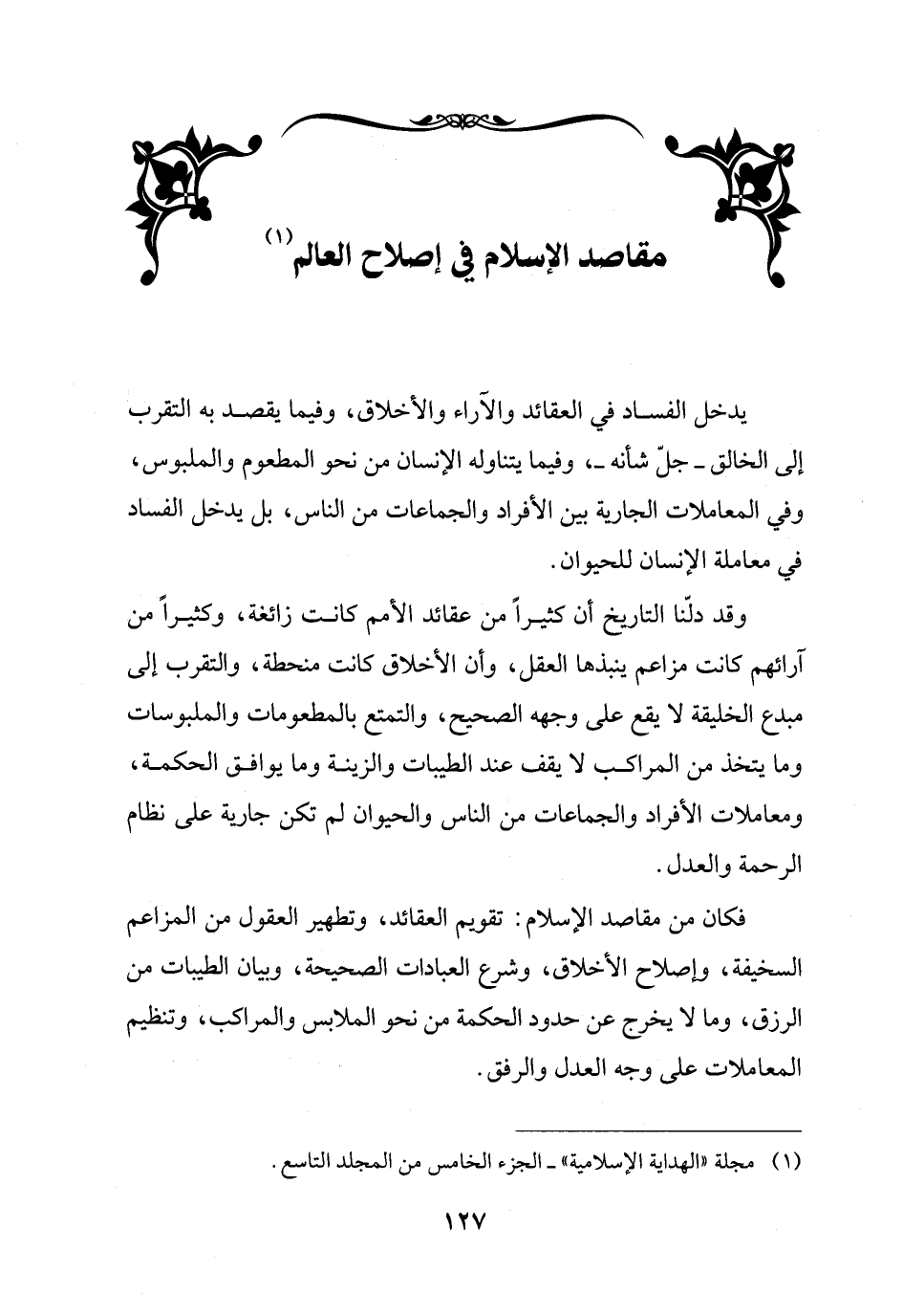 مقاصد الاسلام في إصلاح العالم (¬1)