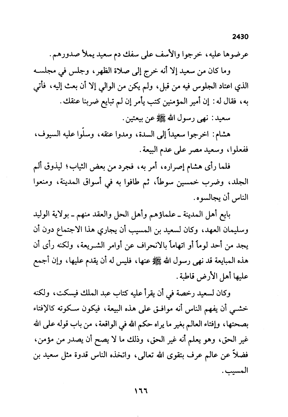 هشام: اخرجوا سعيداً إلى السدة، ومدوا عنقه، وسلّوا عليه السيوف، ففعلوا، وسعيد مصر على عدم البيعة.