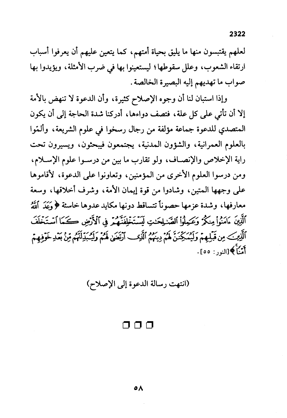 (انتهت رسالة الدعوة إلى الإصلاح)